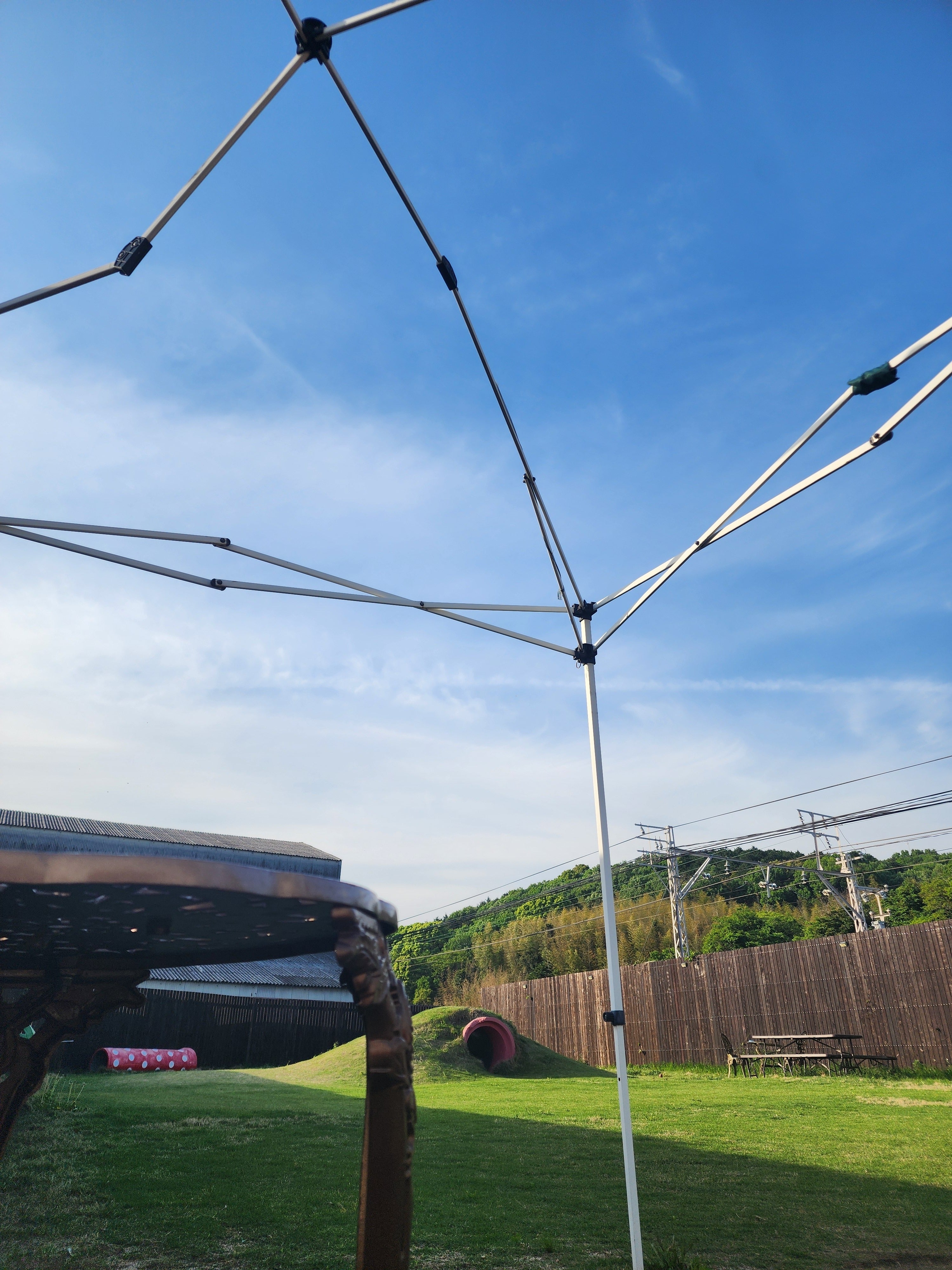 ●強風で壊れたため、強風対応のタープテントまたはパラソル(4台+それぞれの重り4セット)