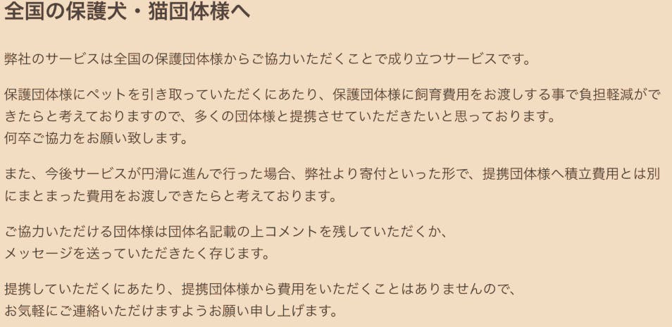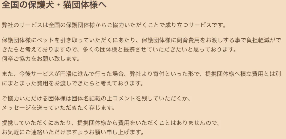 今回のプロジェクトを通じて賛同していただける保護活動団体さんからのご連絡、