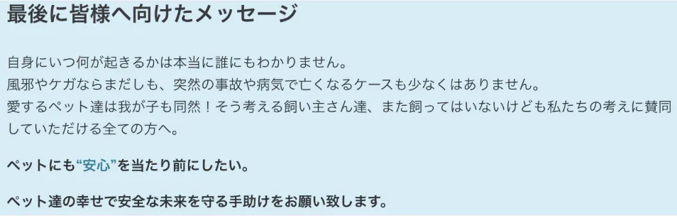 多くの飼い主さんも自分に何かあった時、ペットのことを心配しているんだ、とわかり、