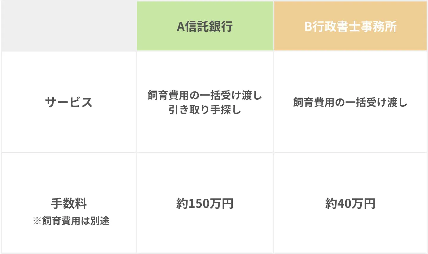 下記はすでにあるペット信託サービスの事例です。高額で手間が多く、