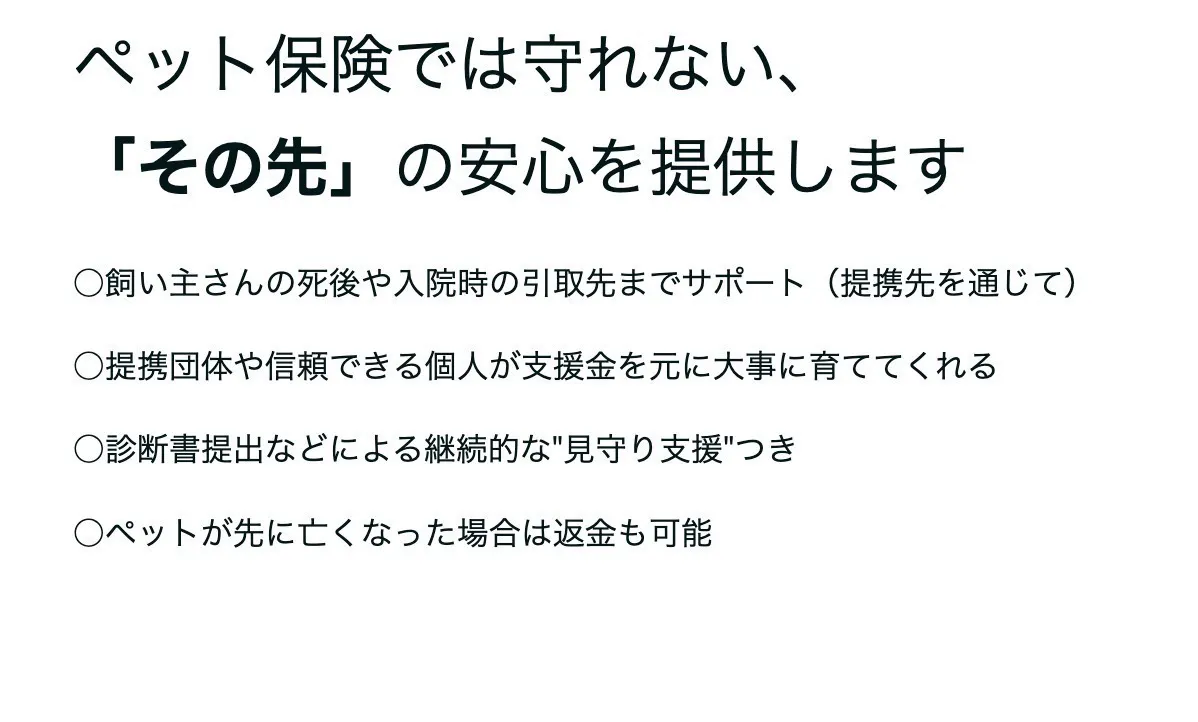 私たちはこのサービスを展開することで、ペット達と安心して暮らせる体制を整え、