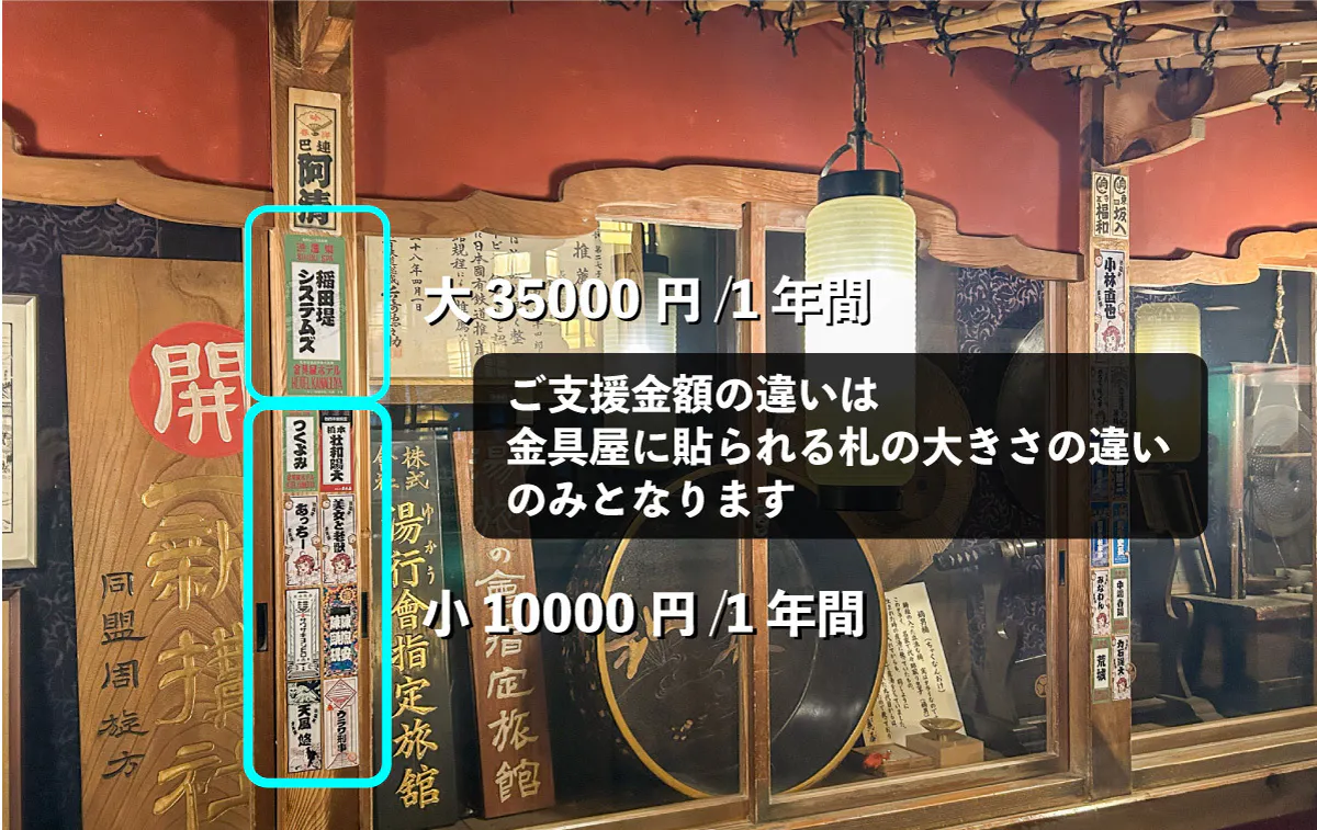 「金具屋千社札プロジェクト」は今回で6期目となります。これまで多くのご支援をいただき、心より感謝申し上げます。引き続き、この建築と歴史を後世へ伝えるため、どうか応援をよろしくお願いいたします。