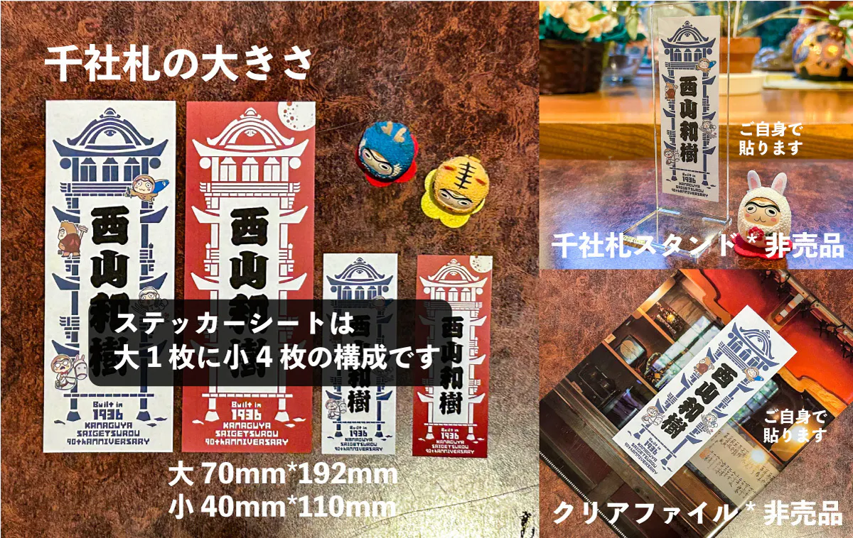 ・製作した千社札のウォールステッカー1枚(大1枚+小4枚)をご自宅に送付