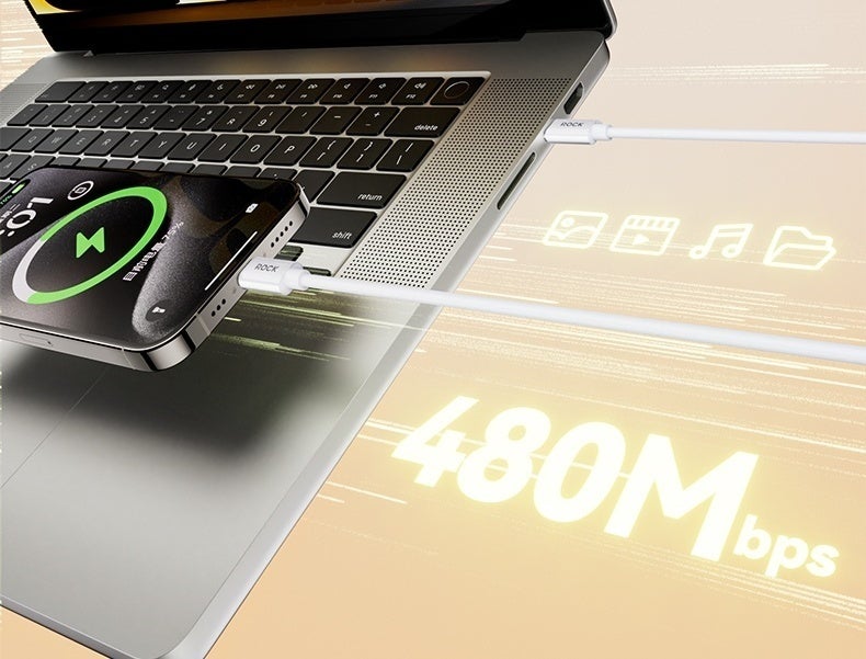 充電だけでなく、パソコンとスマートフォン間で480Mbpsの高速データ転送も可能です。素早くデータを共有したい時に大変便利です。