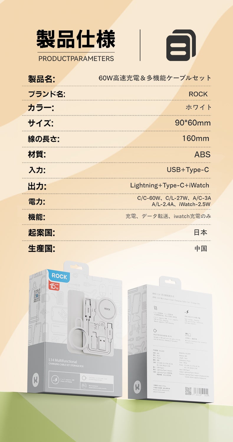 革新的なテクノロジーと洗練されたデザインが融合した、極薄カードサイズの高速充電&多機能ケーブルセット「ROCK」をご紹介いたします。