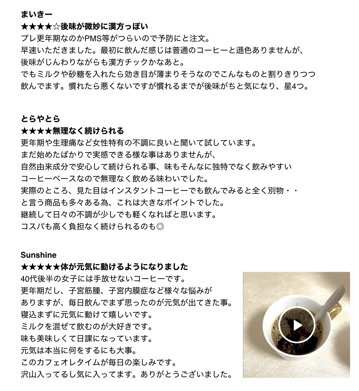 女性の体に合わせ、さまざまなお悩みに応えるために、開発したコーヒーです。今回はカフェインレスコーヒーです。