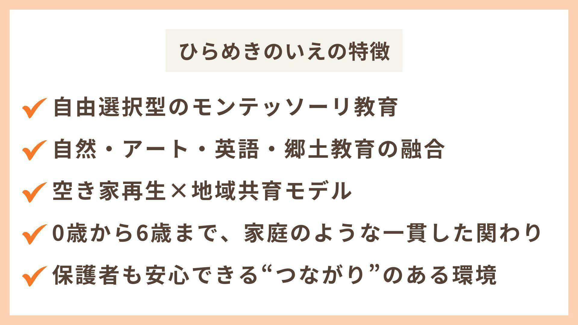 「ひらめきのいえ」は、空き家を再生し、地域の大人たちと共に育てていく“共育拠点”。 農家さんや商店主、おばあちゃんやおじいちゃんが「先生」となり、こどもたちの好奇心と人とのつながりを育てる、そんな場所にしていきます。