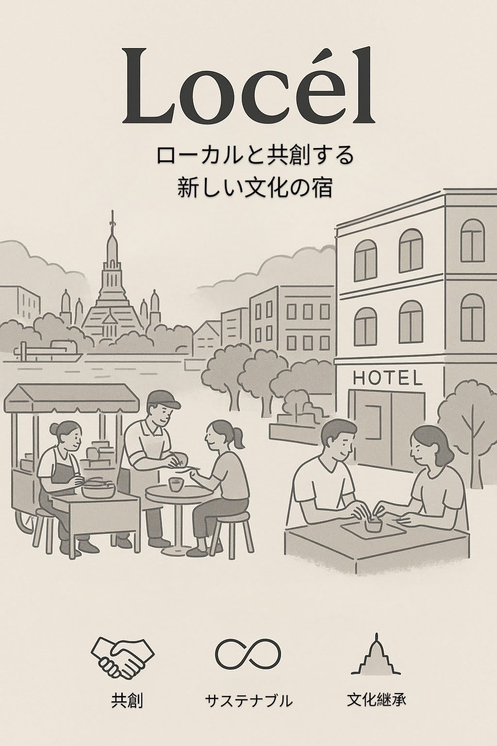 私は、タイが誇る「微笑みの文化」や「豊かな伝統」を未来へとつなぐために、観光客と現地の人々がお互いを尊重し、共に支え合える持続可能な社会をつくりたいと考えています。Local + Hotel ローカルと旅人が共創する新しいコンセプト宿「Locél」と私は名付けました。