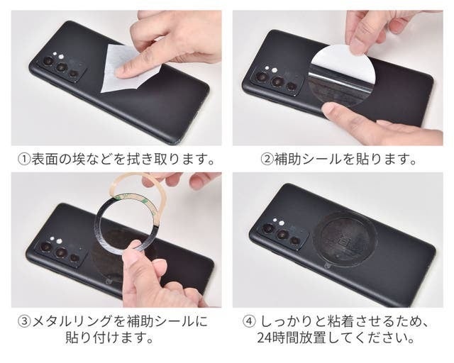 ※非MagSafe対応のスマートフォンやスマホケースには、メタルプレートをケースの外側に取り付ける必要があります。