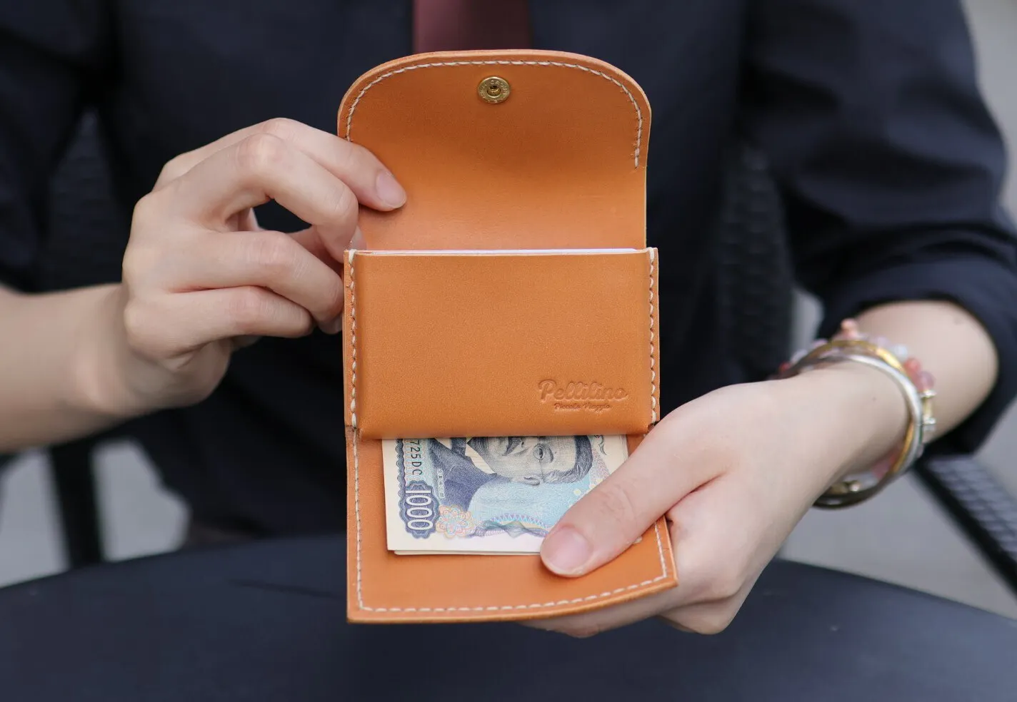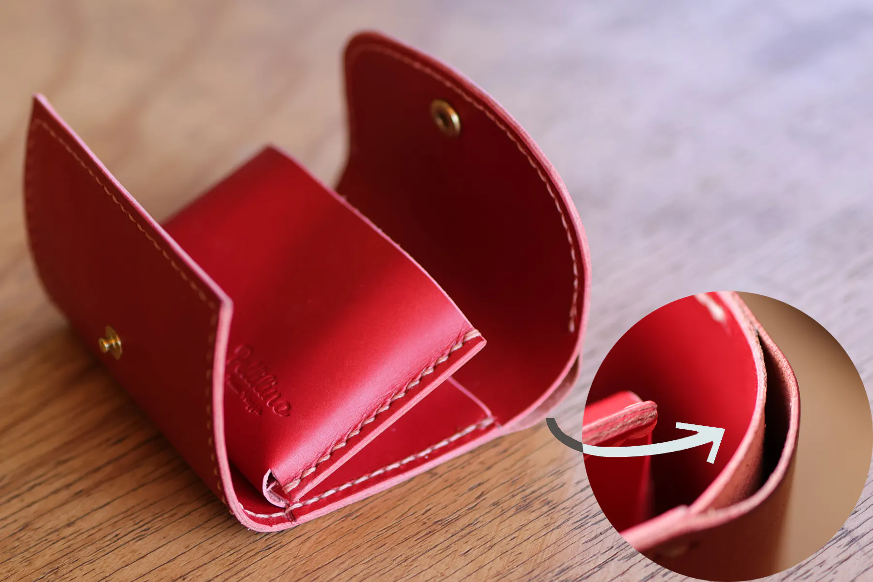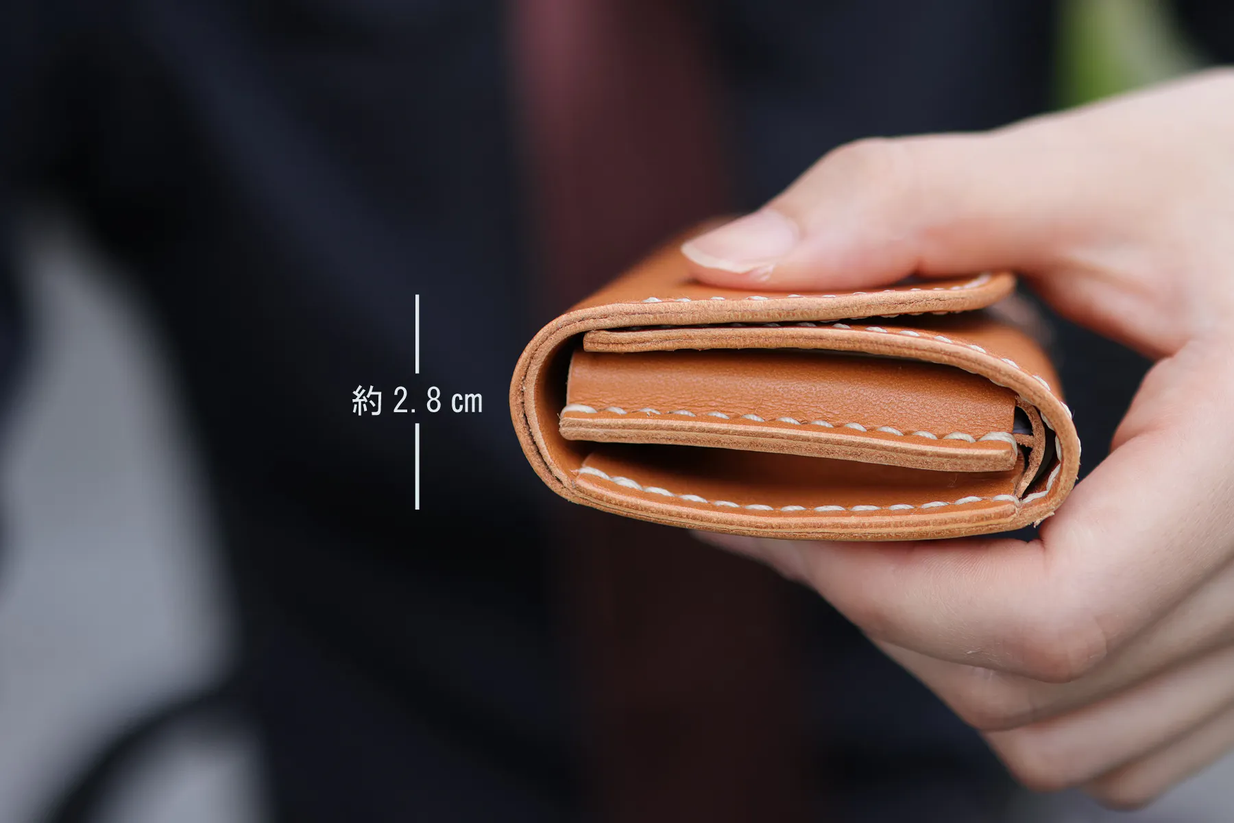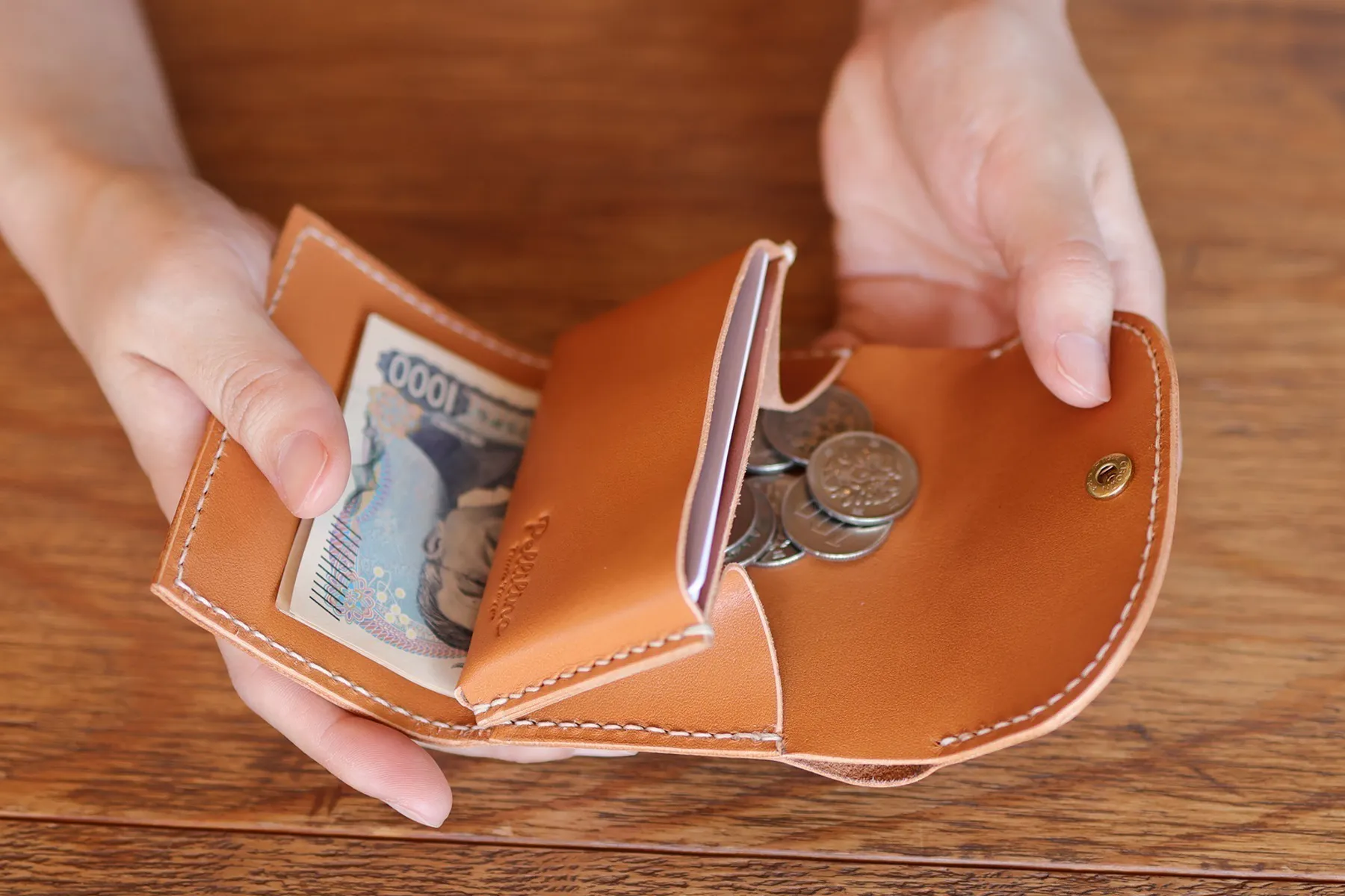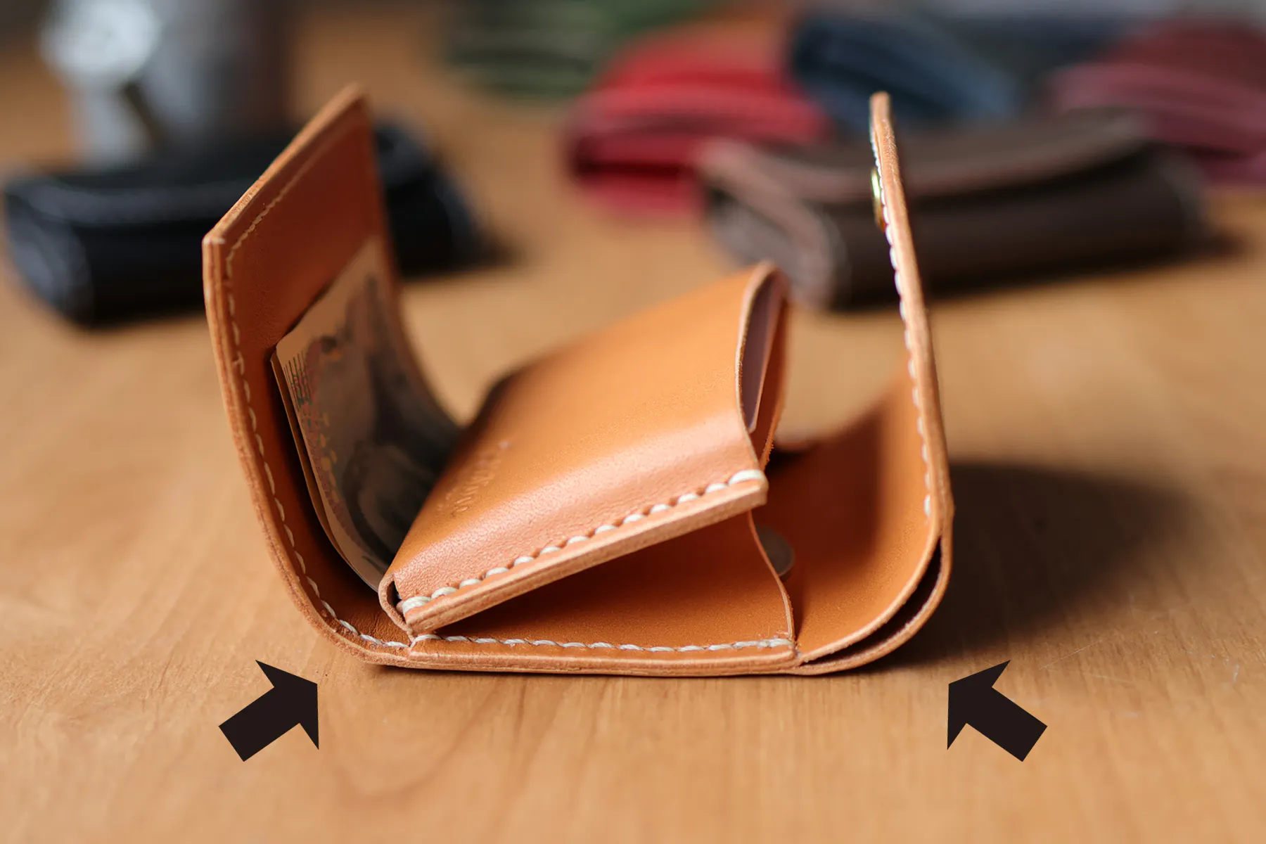 不思議な構造!お札が隠れて折れない!手縫いで丈夫なタンニンなめしのミニ財布