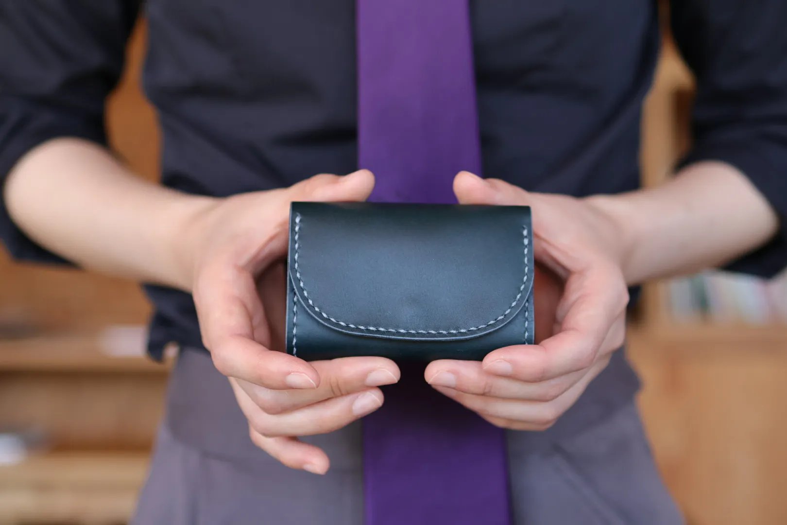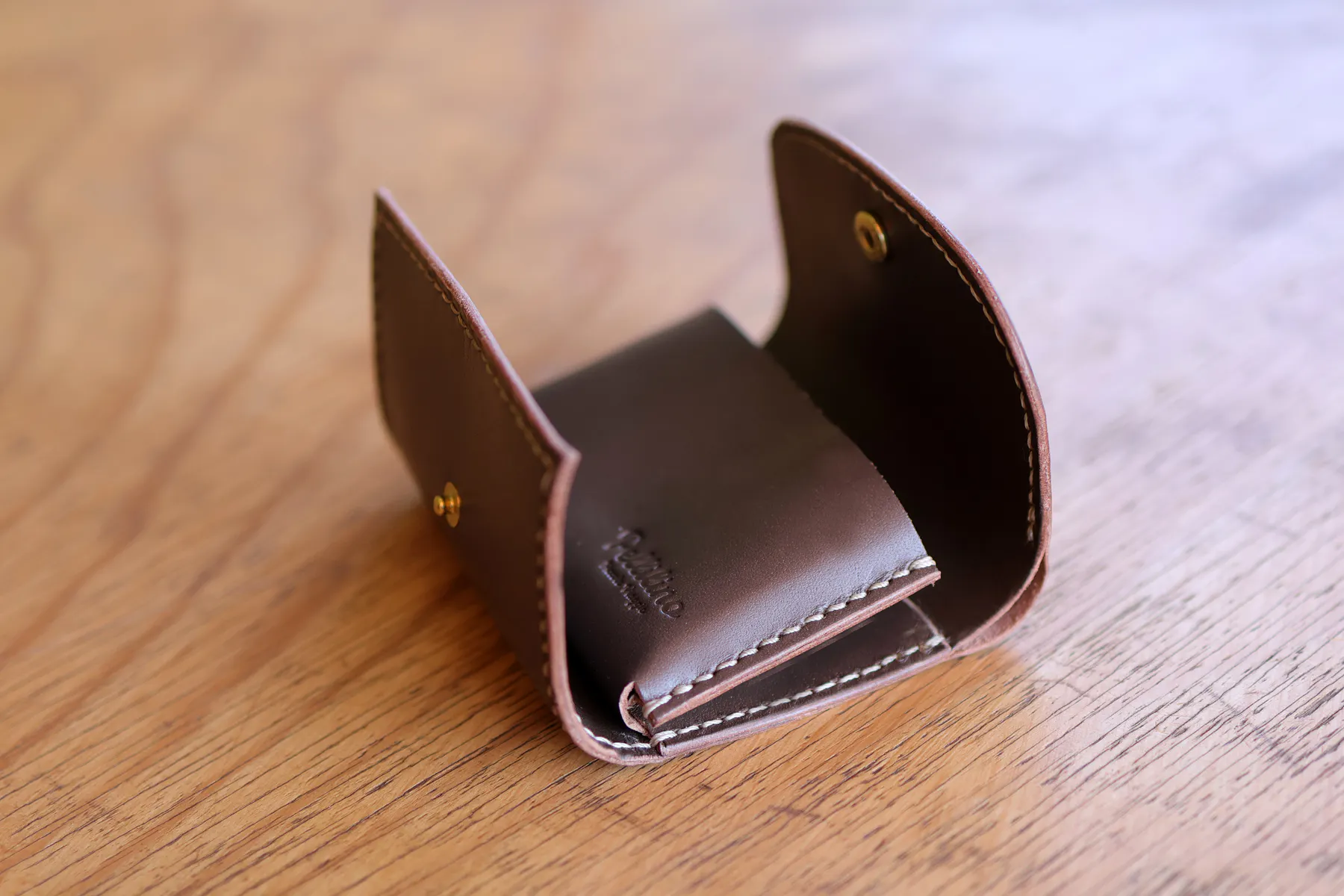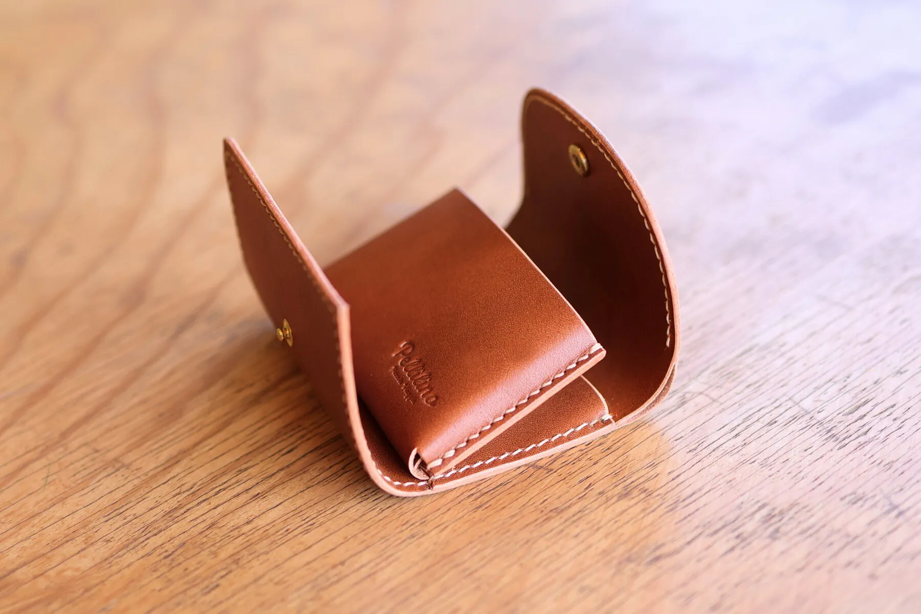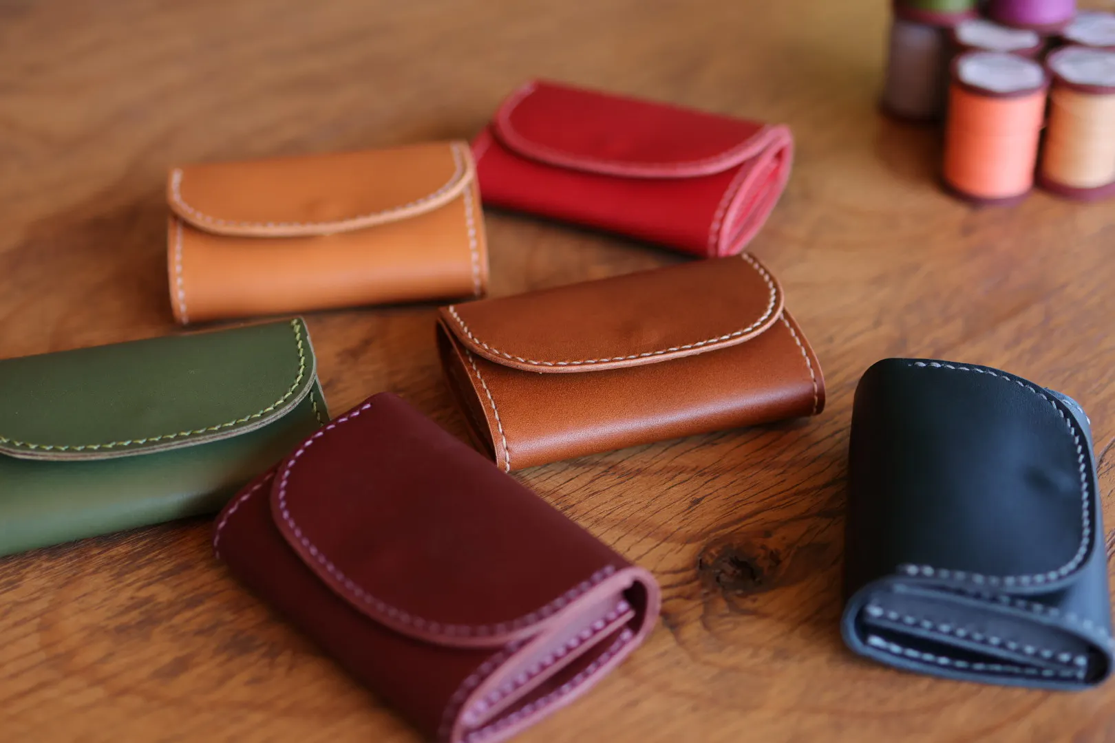 不思議な構造!お札が隠れて折れない!手縫いで丈夫なタンニンなめしのミニ財布