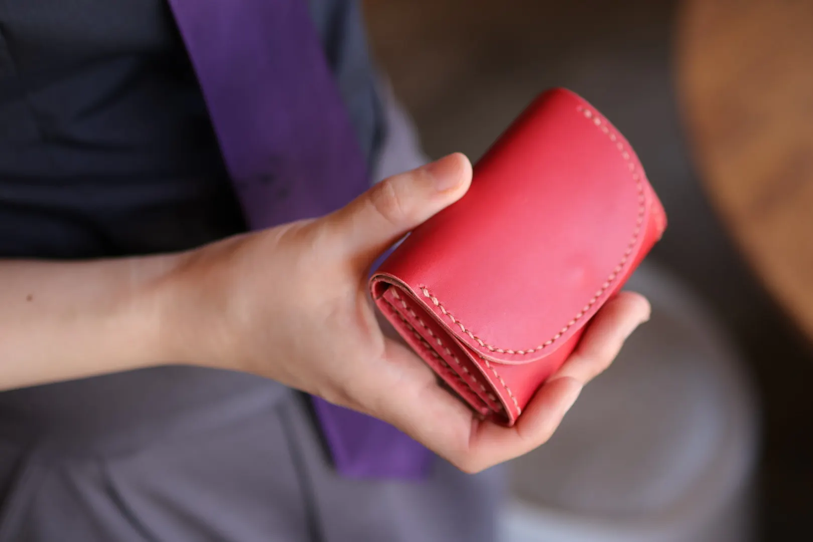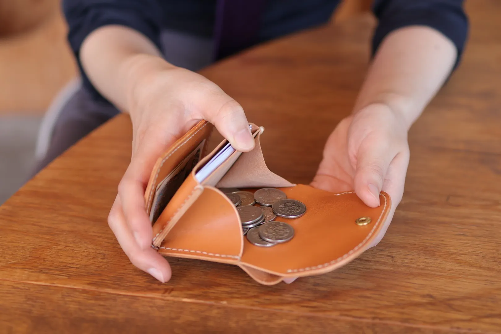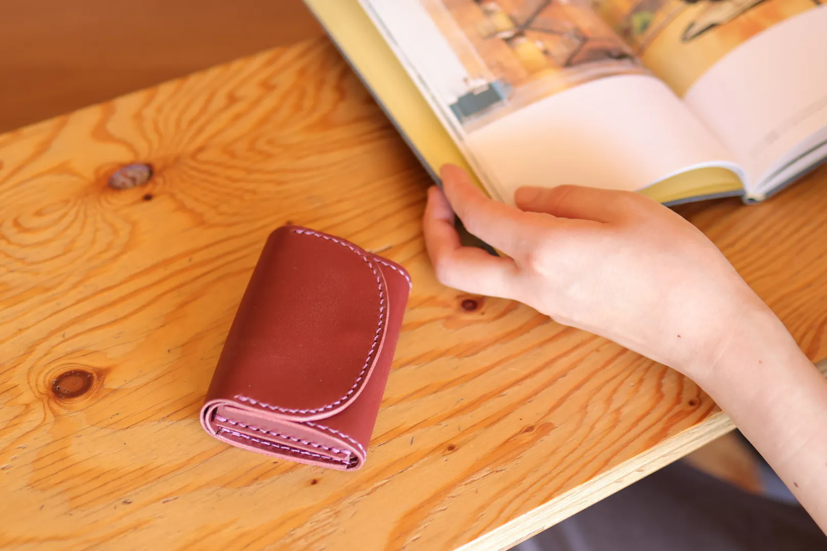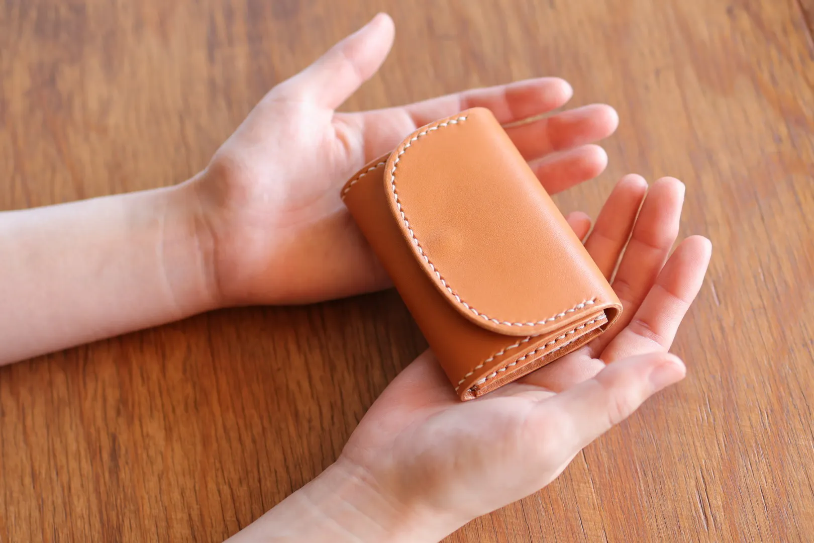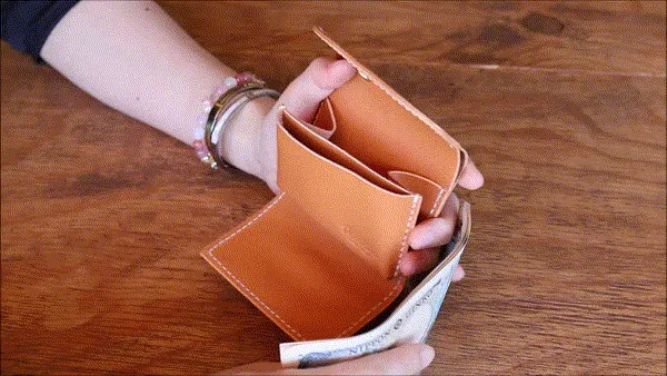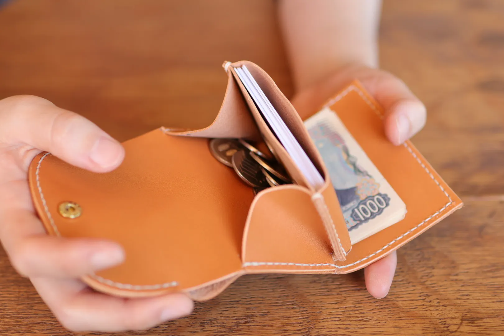 不思議な構造!お札が隠れて折れない!手縫いで丈夫なタンニンなめしのミニ財布