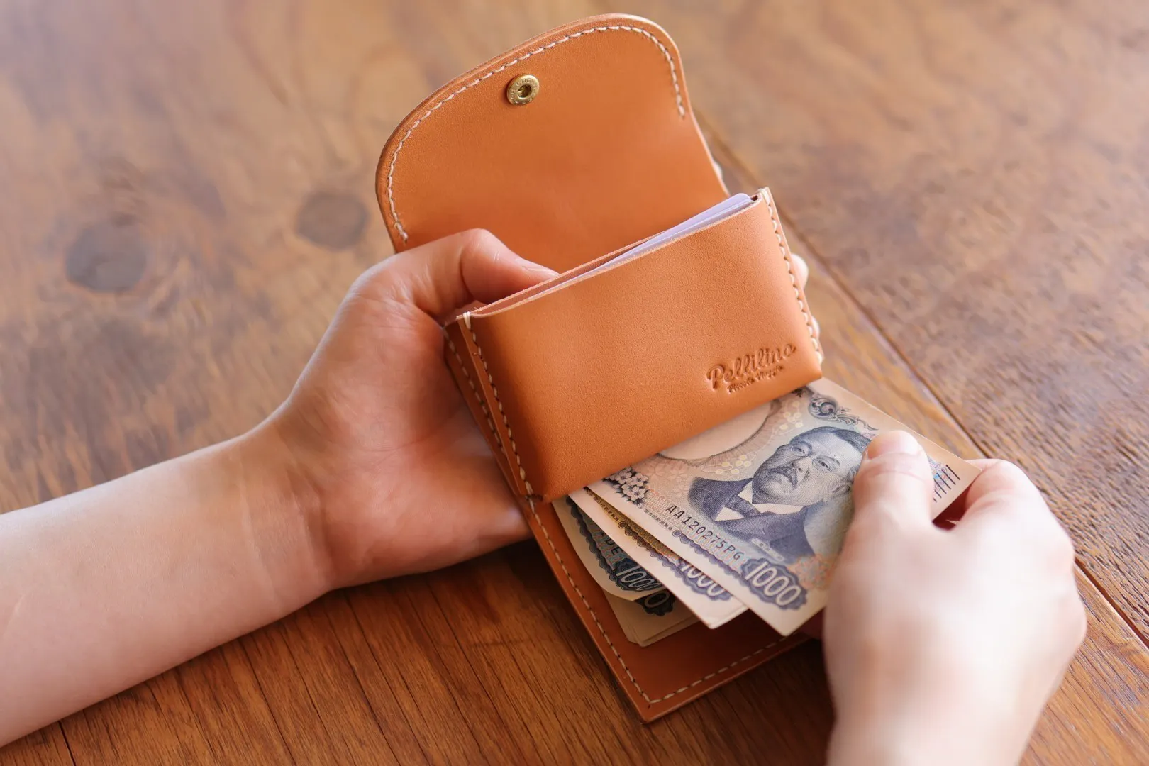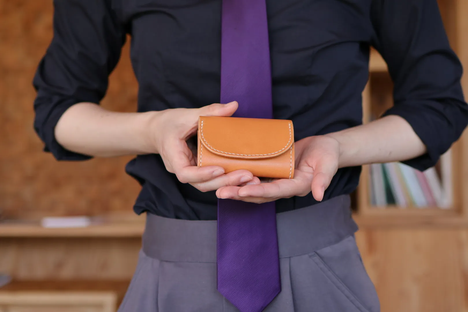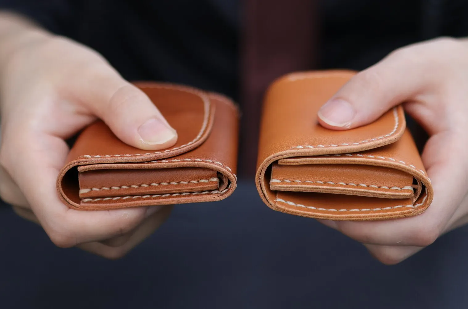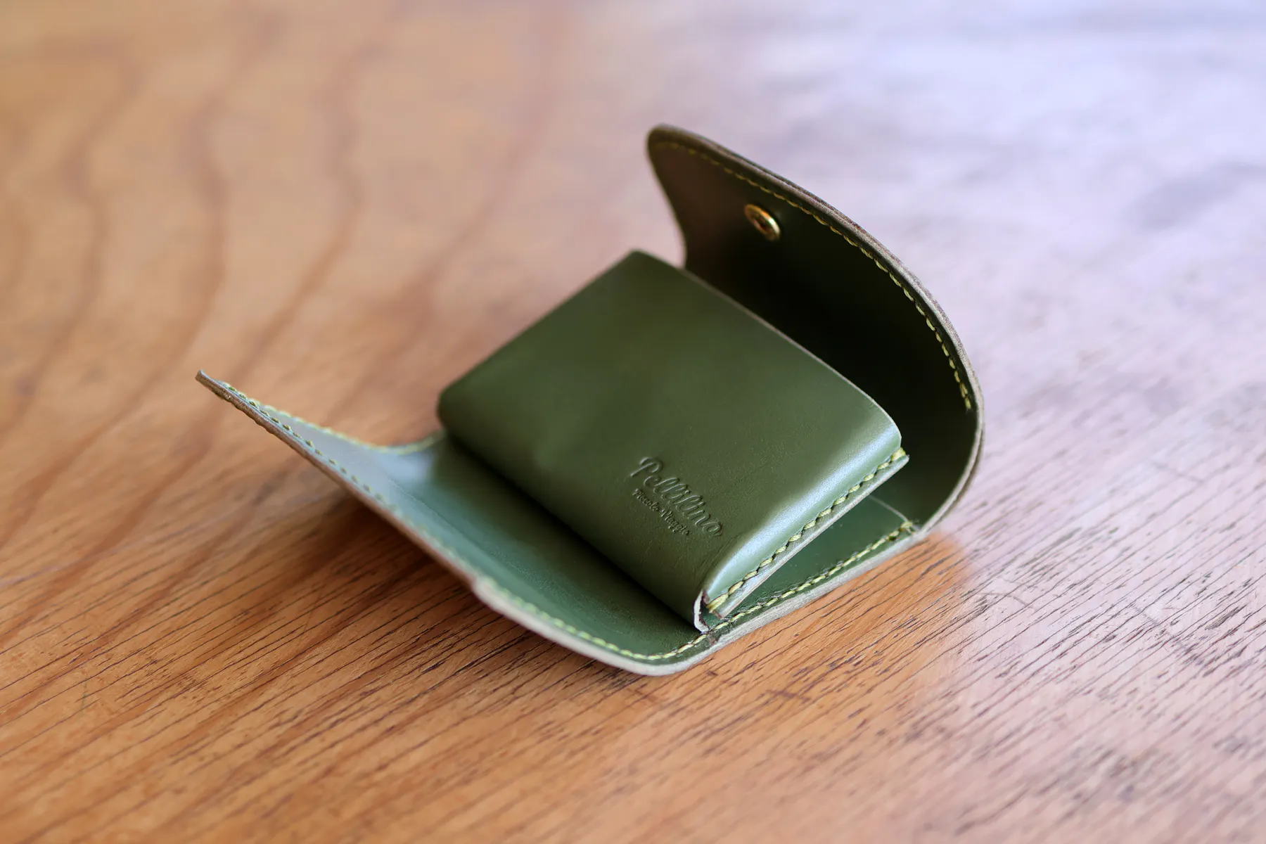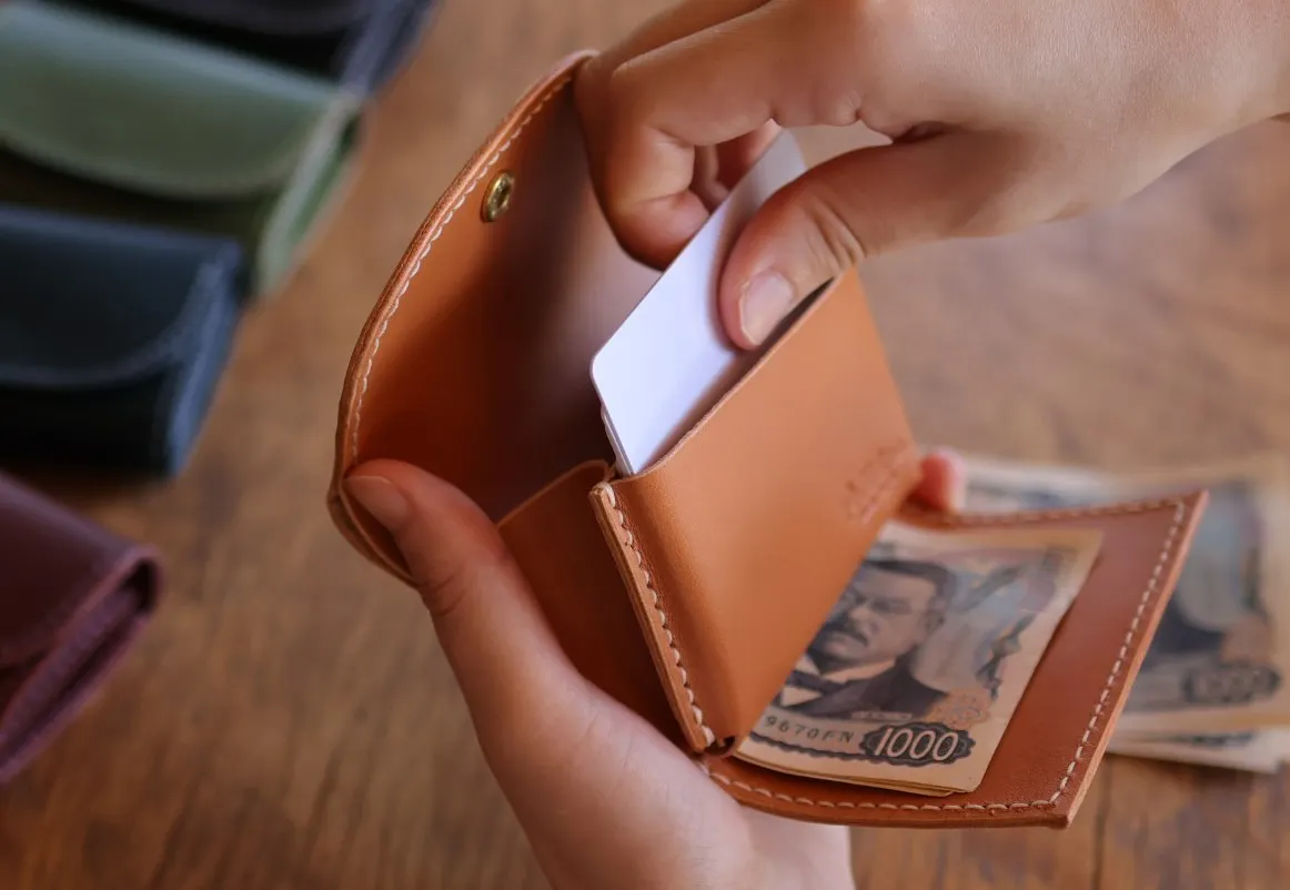 不思議な構造!お札が隠れて折れない!手縫いで丈夫なタンニンなめしのミニ財布