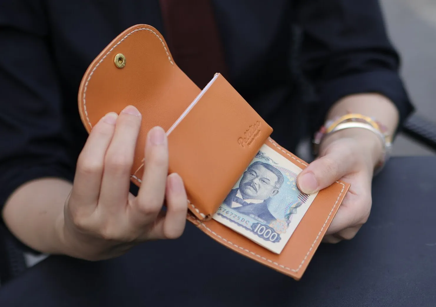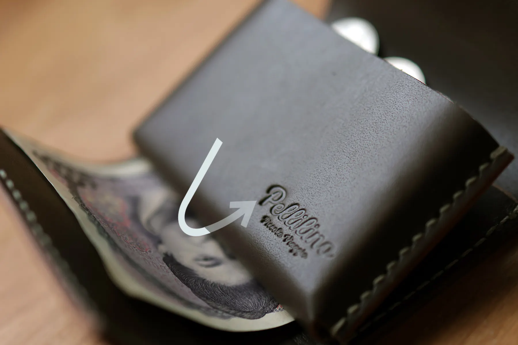 革をあらかじめ曲げながら縫製する技術により、お札の2箇所が緩やかに曲がり1枚でもしっかりホールドすることが出来ます。