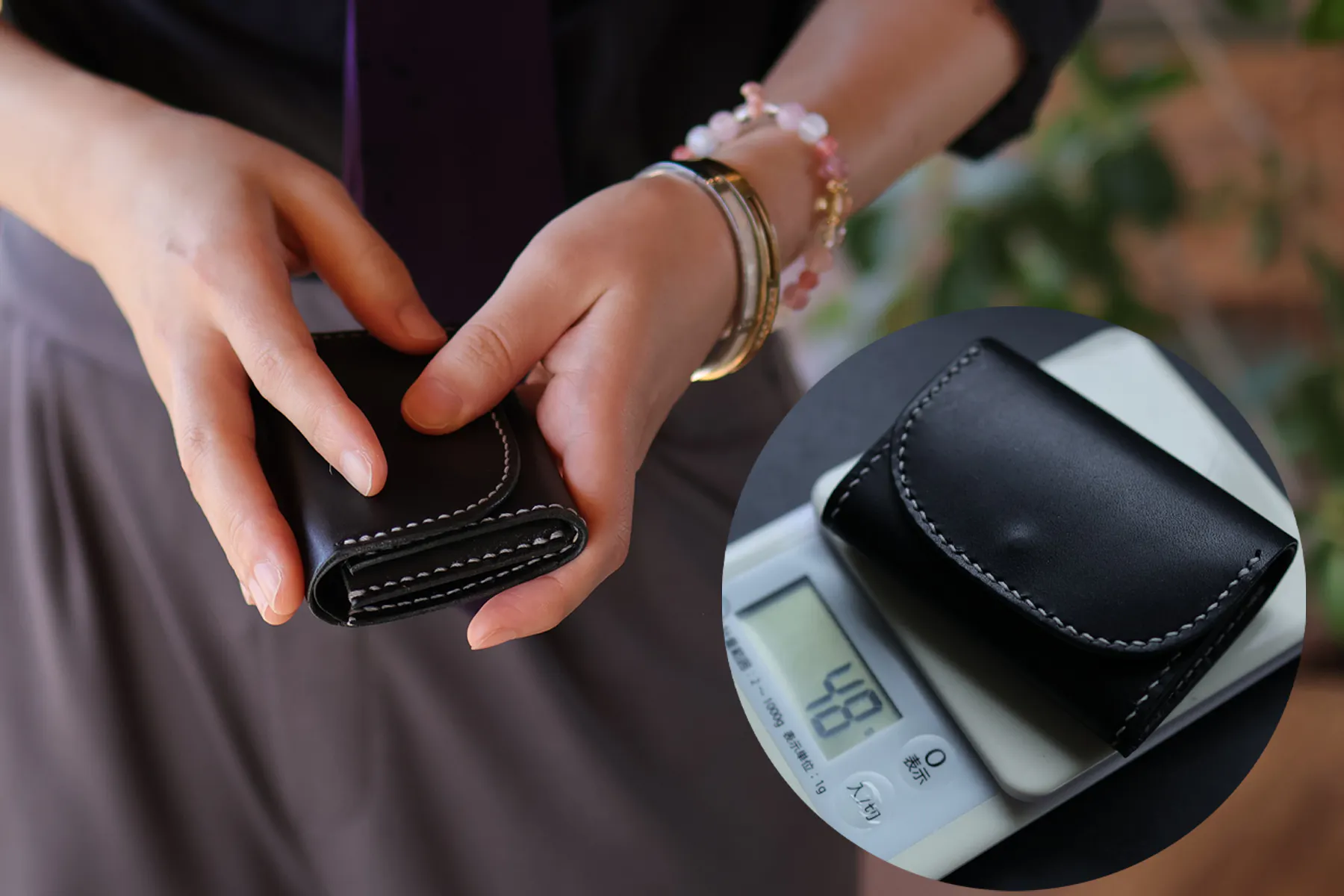 隠れた箇所、見えない部分を薄く加工して軽量化しています。※革や加工の状況により±1〜2g程度の誤差がございます。