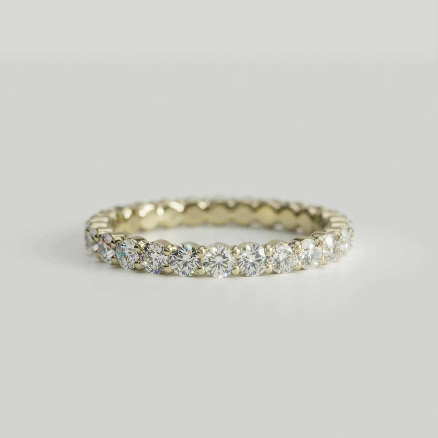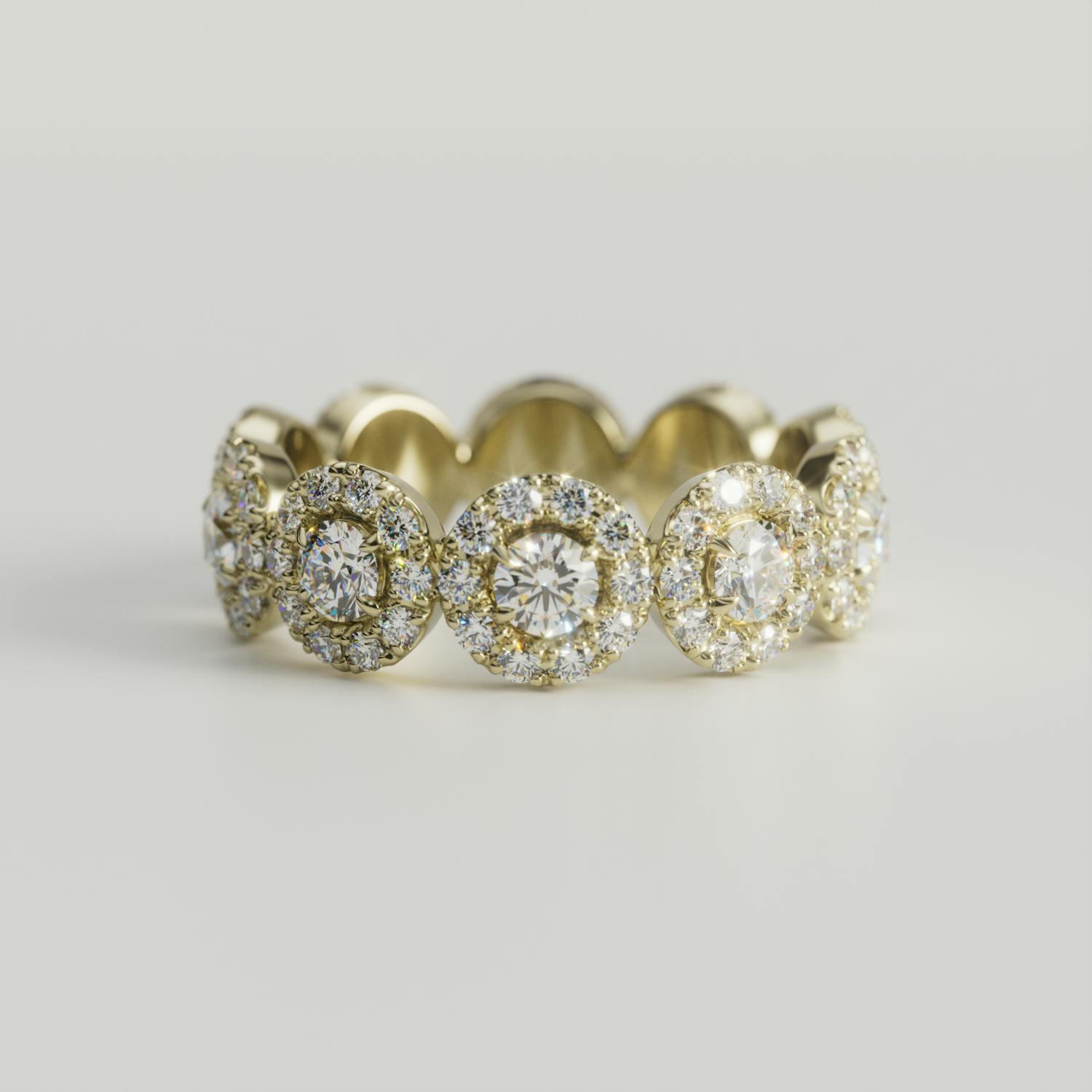 A. ヒアリング後に都度お見積り(例:K18×ダイヤのフルエタニティで中〜高価格帯)。