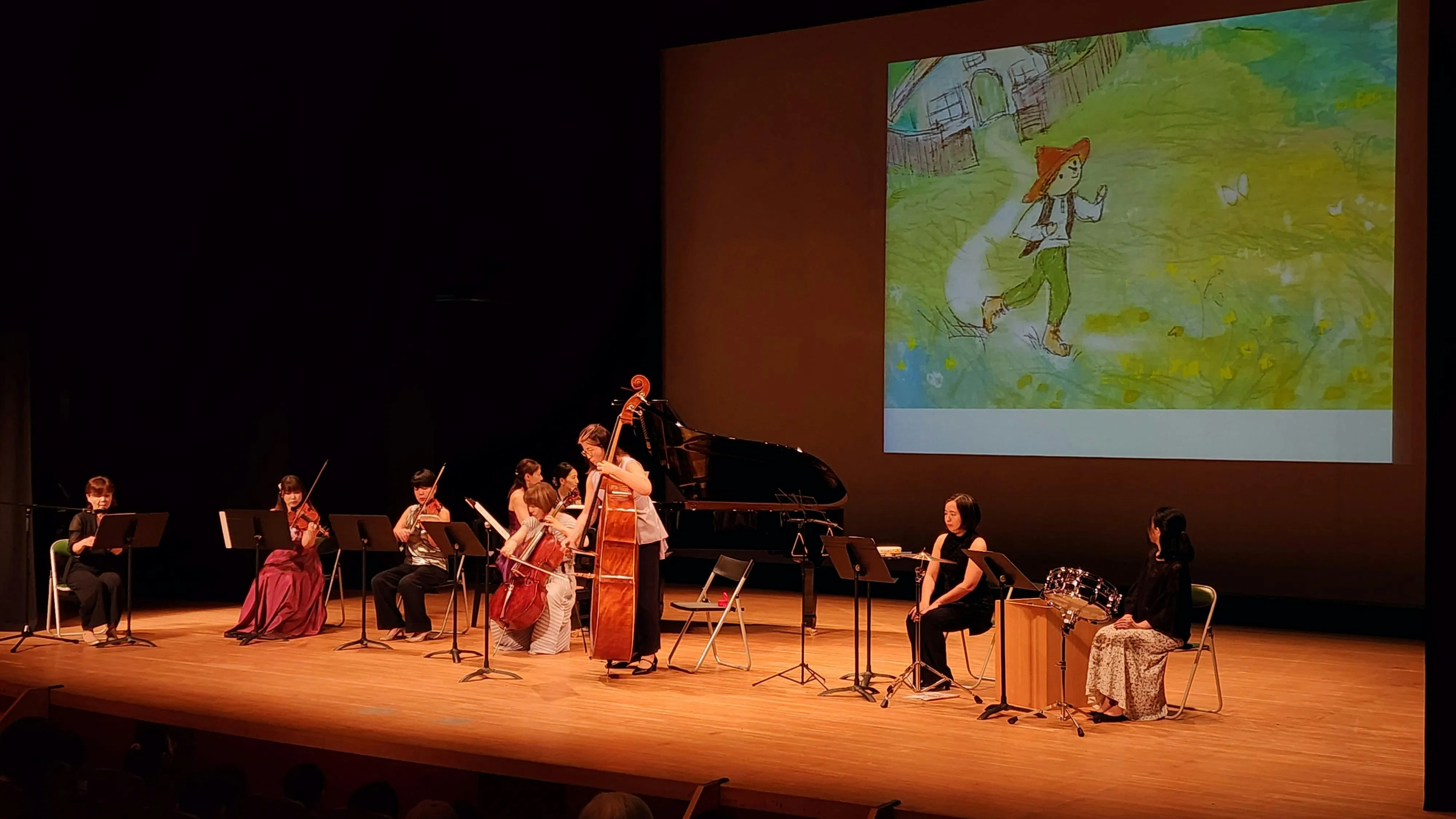 2025/08/17 22:268/15(金)こむこむ館わいわいホールにて【ワンコイン·コンサート×2〜みんなで楽しくクラシック〜】を開催しました。午前の部 ちいさな子どもたちのためのの“はじめましてクラシック”の最後は客席の子どもたちをステージに呼び寄せ、「さんぽ」を斉唱。子どもたちは普段聴くことが少ない弦楽器、クラリネット、ピアノ、打楽器のアンサンブルの近くで生の音の響きを感じながら共に歌いました。おしまいのご案内をすると「帰りたくない、もっと歌いたい!」という声も聞こえ、とっても楽しんでもらえたようでした。午後の部“はじめましてクラシックmini”のあとは“音楽でめぐる世界旅行”と題し、いろいろな作曲家の作品を親しみやすい解説つきでお届けした。最後は客席の皆さまも一緒にバーンスタイン作曲“ウェストサイドストーリー”より「アメリカ」で打楽器演奏体験を行った。抽選で選ばれた4名がタンバリン、トライアングルの演奏体験をした。トライアングルはとても揺れるのでかなり難しいが、数回練習の後、上手に演奏できました。コンサート終了後に抽選で選ばれた10名がバイオリン楽器体験をした。その後にクラウドファンディングのリターンの【15分ワンポイント·レッスン】を行い、当日の活動終了となりました。リターン【小原風子さんのメッセージつき「もこもこ雲のテラドラゴン」絵本】 もっと見るプログラムが出来上がりました!!