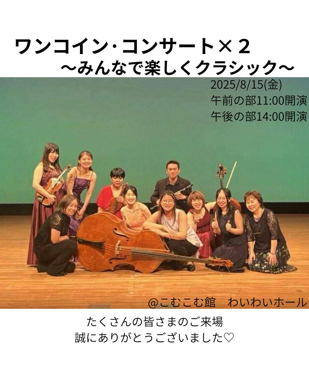 「東日本大震災の後、福島の皆さんのために私たちの音楽でできることは何かを考え、原発事故により外で遊ぶことができなくなった子どもたちにコンサートを楽しんでもらいたいという思いに行きつき、2015年にワンコイン・コンサート×2がスタートしました。気づけば今年は10周年。これからも子どもから大人までみんなで一緒にクラシックを楽しめるコンサートを目指してまいります!たくさんの皆様のご来場を心よりお待ちしております。」