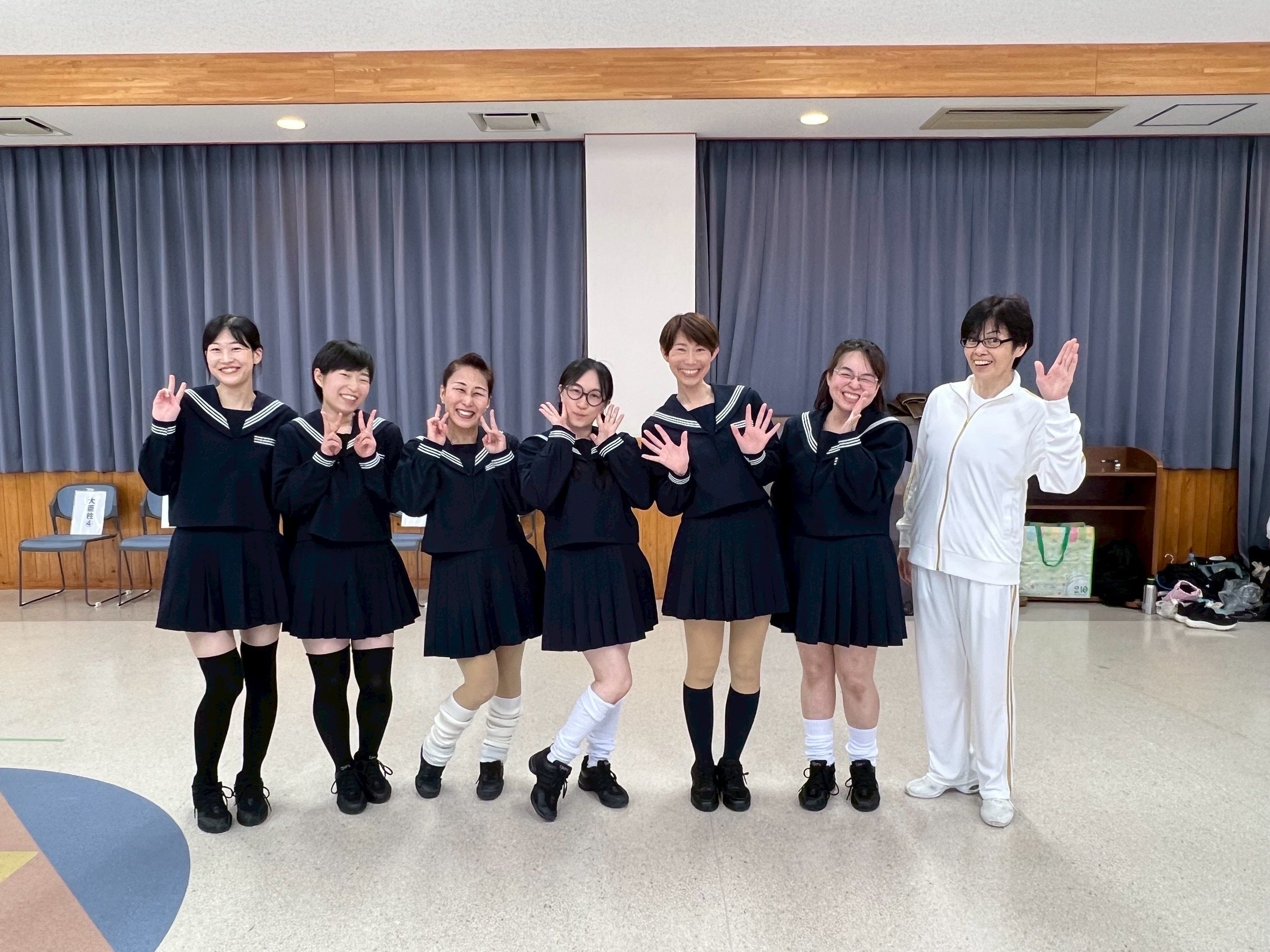 今回はコメディミュージカルということで、みんなの衣装も個性豊か!中高年も学生の衣装を着たりと出演者自身も大いに楽しんでいます。