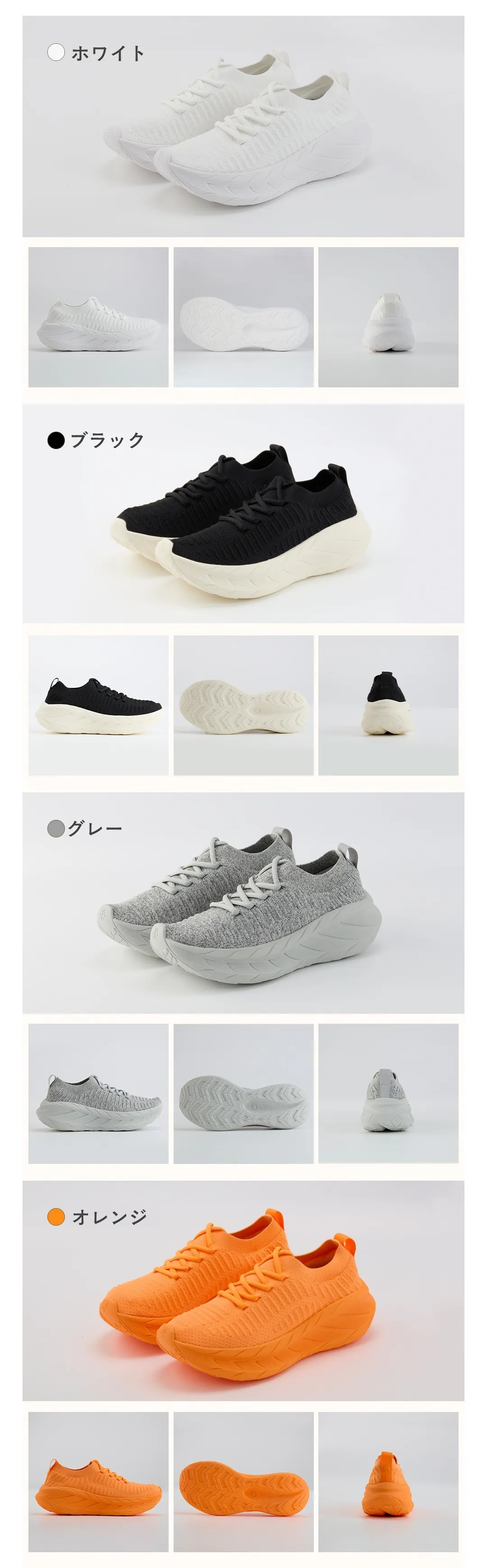 カラー:ホワイト、ブラック、グレー、オレンジ