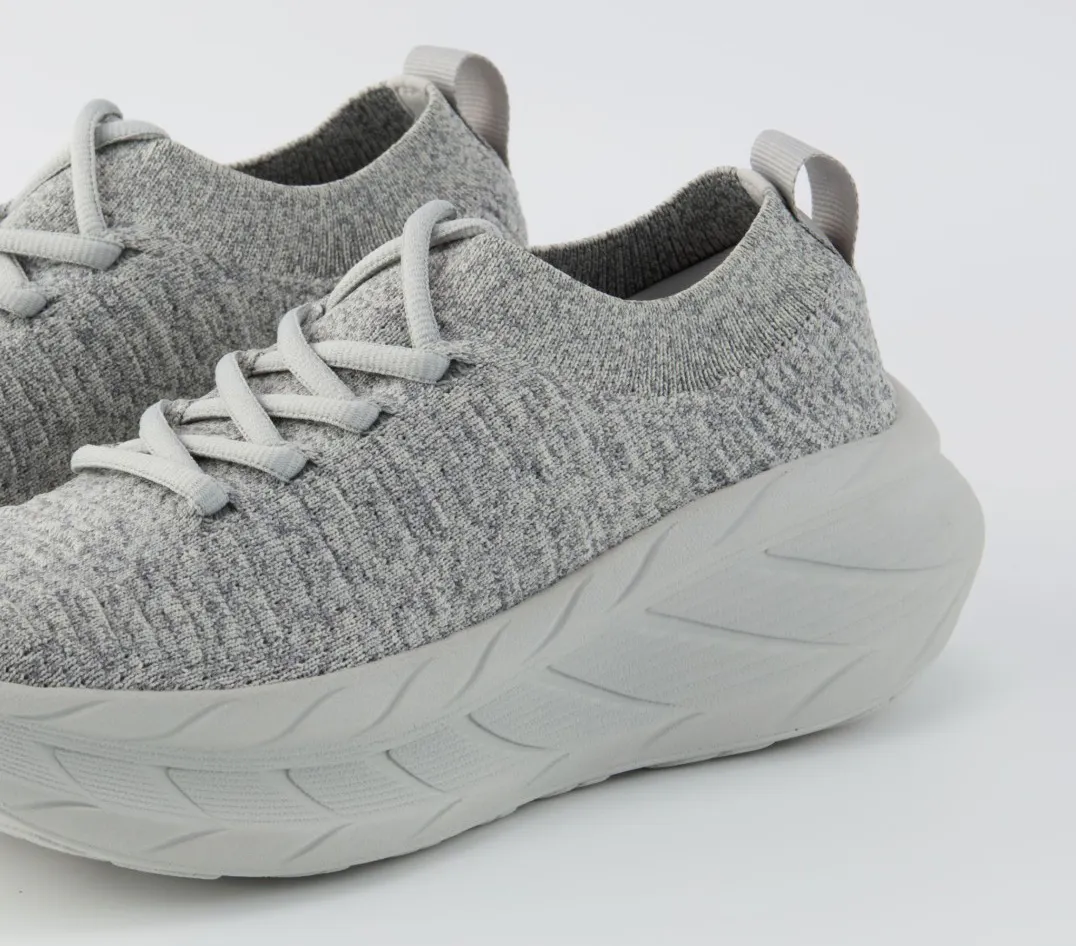 高密度フライニット素材が、足を優しく包み込み、足形に合わせてぴったりとフィットします。この構造により、サポート力と通気性がバランスよく保たれ、快適な履き心地が続きます。