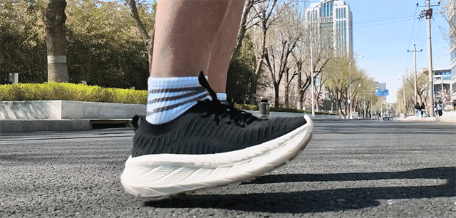 前後10°のダブルカーブと5mmの傾斜を採用したスイング設計により、重心移動を促し、足への負担を軽減。自然な足運びをサポートし、快適な推進力とランニング効率を実現します。
