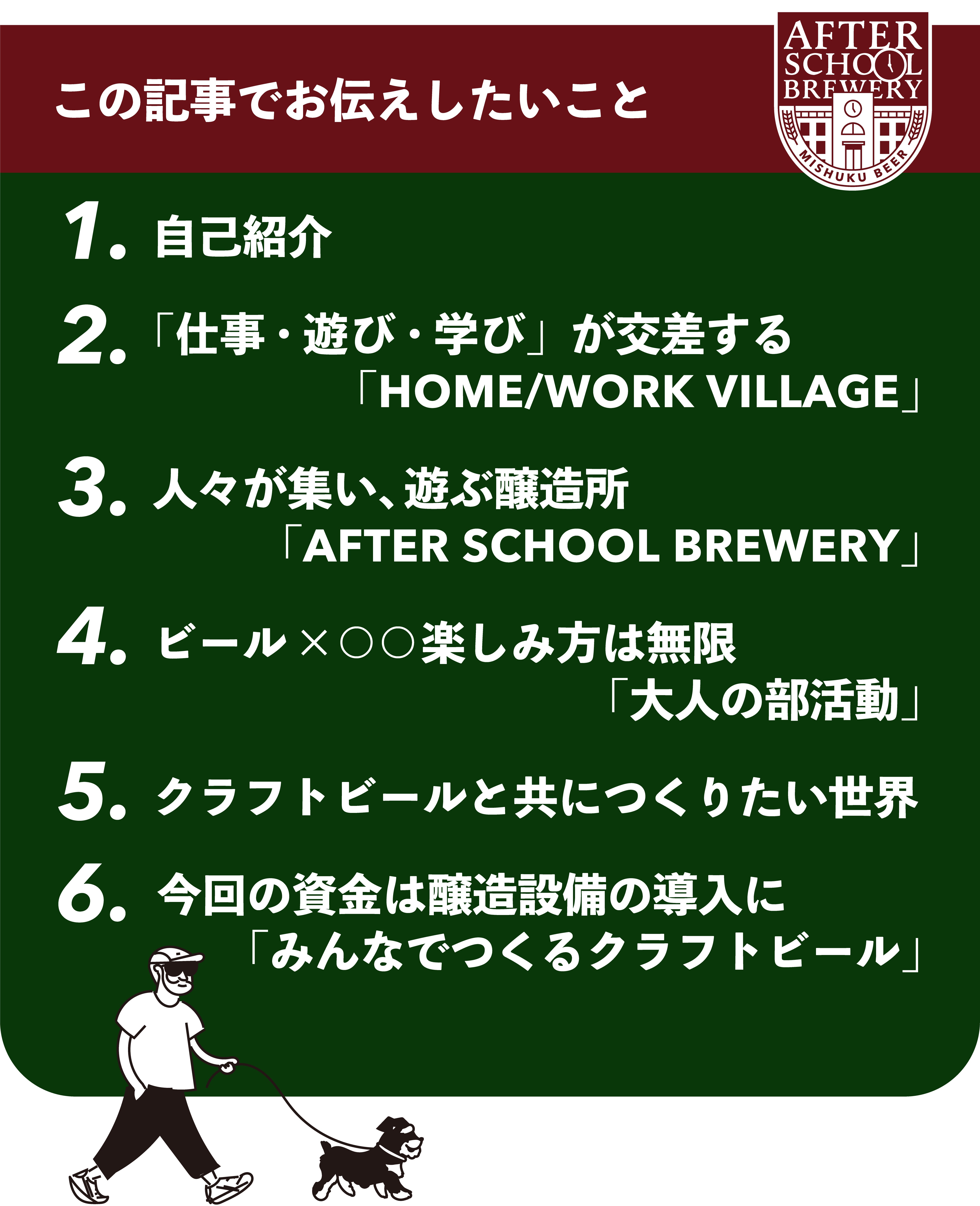 皆さま、はじめまして。「AFTER SCHOOL BREWERY」の校長、菊池文武と申します。まずはたくさんのプロジェクトがある中で、私たちのチャレンジをご覧いただきありがとうございます。