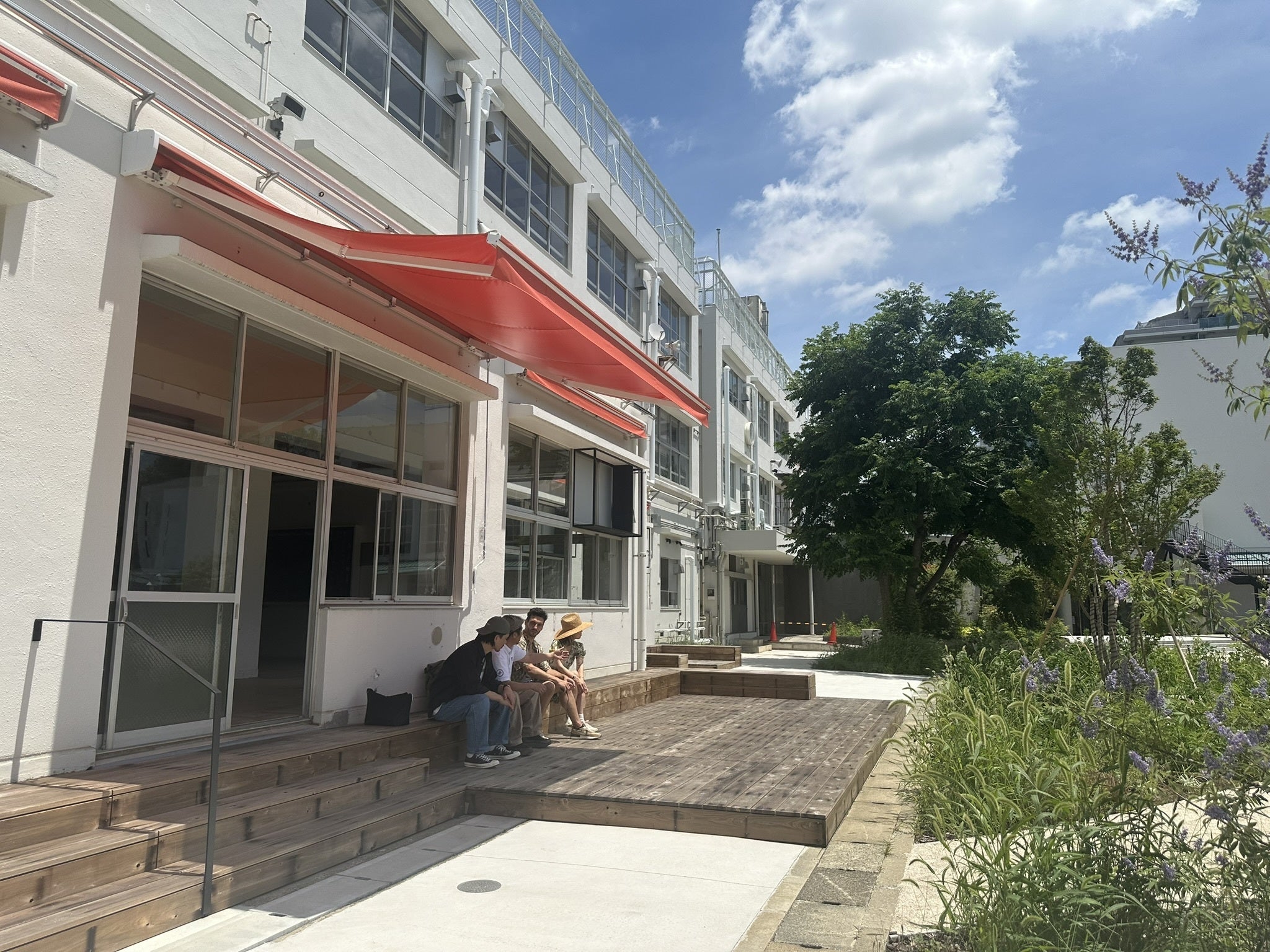 この施設は「仕事・遊び・学び」が交差する、まちにひらかれた拠点。学校の雰囲気を残したまま、おしゃれにリノベーションした建物は、屋上に農園、2階3階はシェアオフィス、そして1階には本屋さんや飲食店という実にユニークなつくり。体育館ではスポーツを楽しむことができ、校庭は芝生や木々に囲まれた憩いのスペースとして、イベントも開催されます。