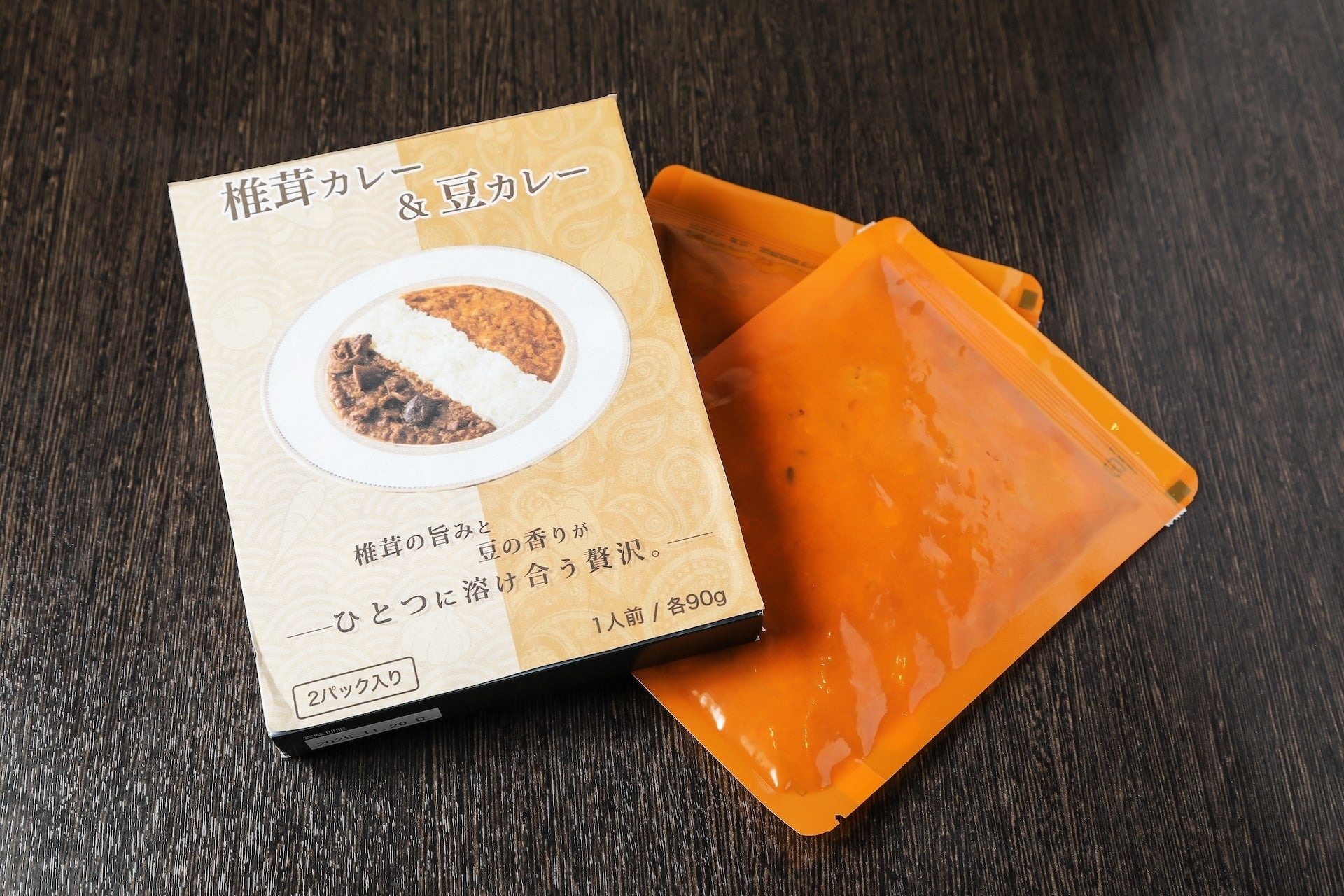 今回リターンでお届けするオリジナルレトルトカレーは、このしいたけをふんだんに使ったオリジナルレシピ。3種類のレンズ豆を使った「ダールカレー」とのあいがけをお楽しみいただけます。