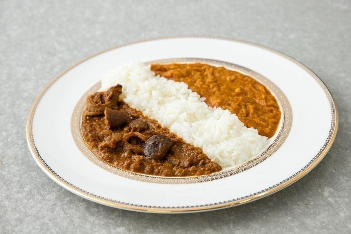 しいたけカレーと豆カレー、2種類のカレーを組み合わせることで味に深みが増し、肉が入っていないとは思えないほど満足感のある食べ応えになっています。
