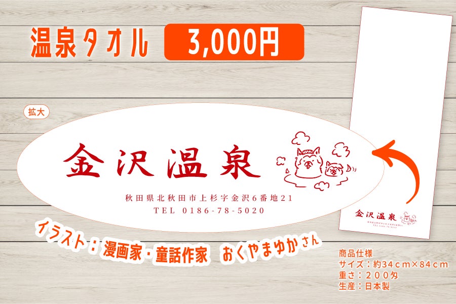 ◎ 温泉タオル… 漫画家・童話作家のおくやまゆかさんに書いて頂いたイラスト入り!