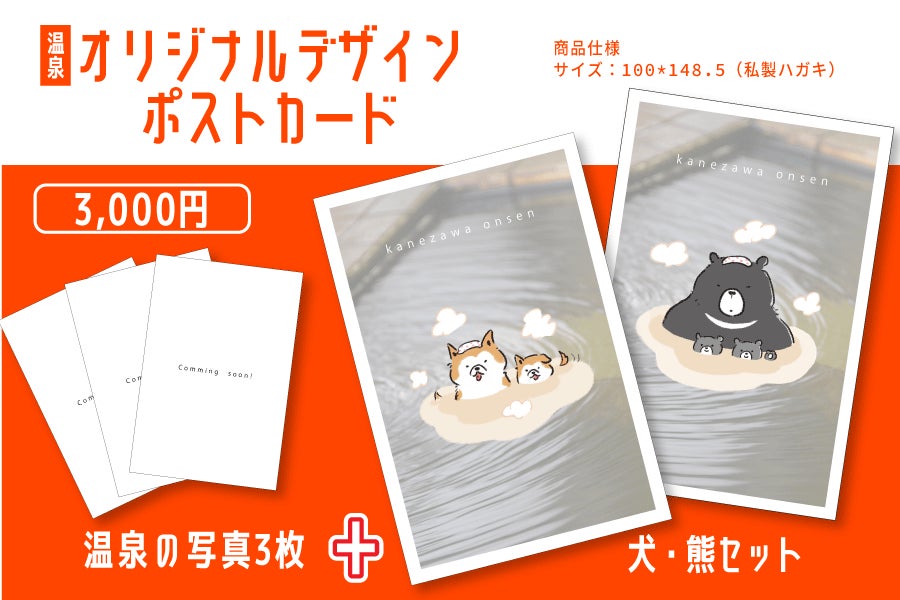 ◎ポストカード 5種1セット 温泉の写真3枚+温泉オリジナルキャラクター 2種(犬・熊)