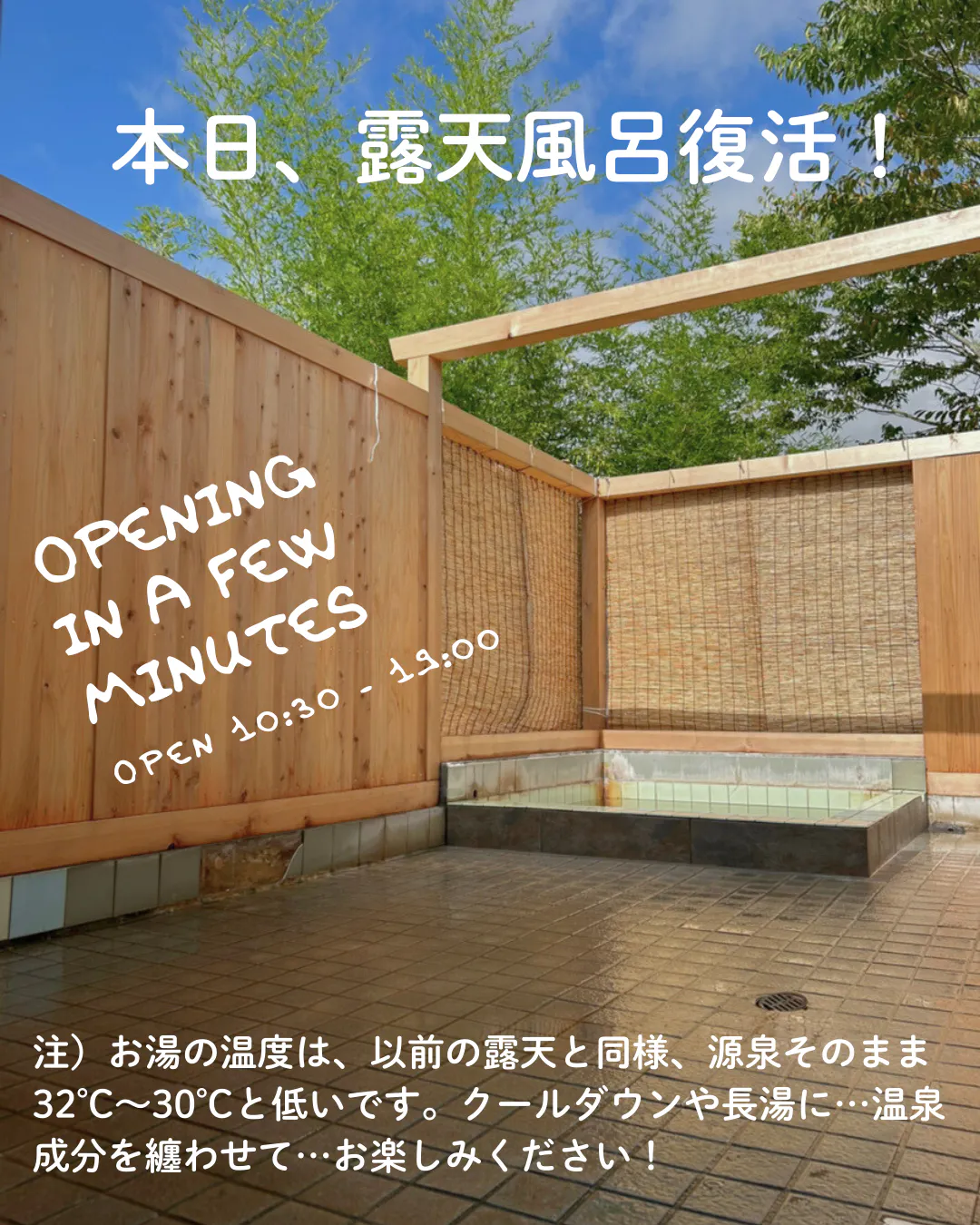 久しぶりの露天風呂再開のため、不慣れな点もあるかと思います。