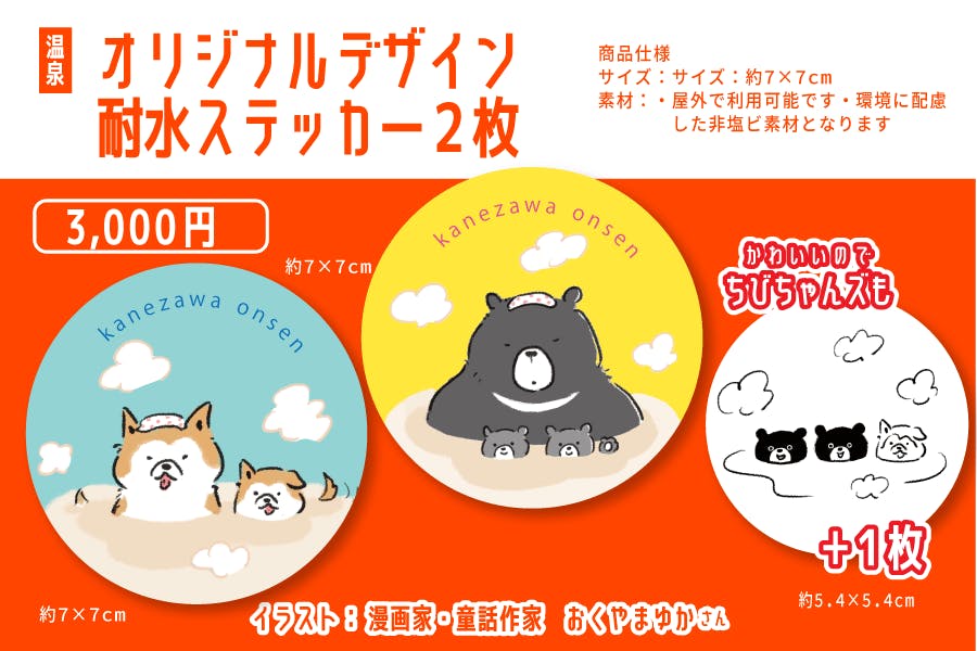 ◎ 温泉タオル… 漫画家・童話作家のおくやまゆかさんに書いて頂いたイラスト入り!
