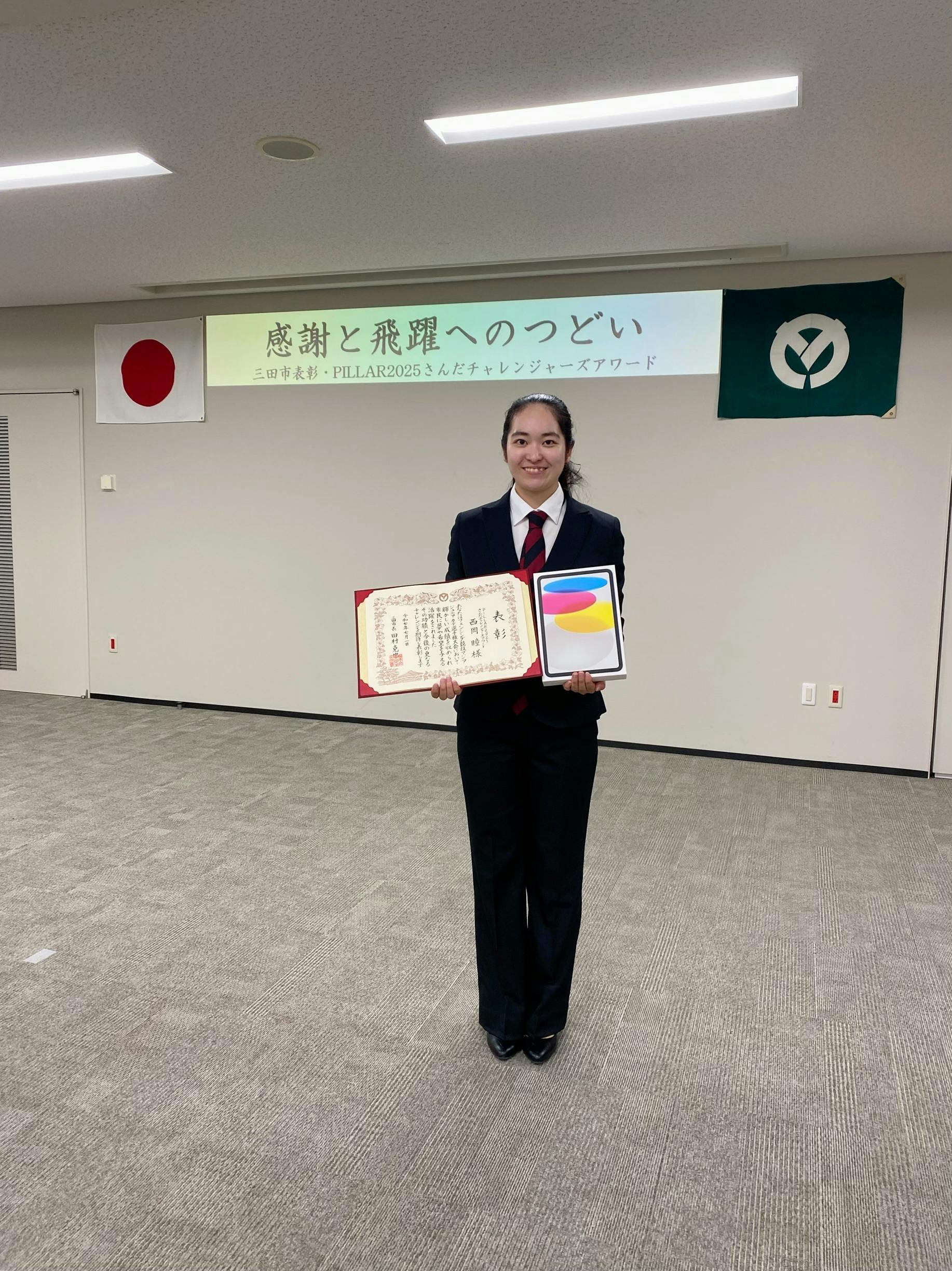 2025年7月1日 火曜日 【PILLAR2025さんだ チャレンジャーズアワード受賞式 】 三田市役所にて16時〜 田村三田市長様から表彰して頂きました。 さつき賞には、民生委員の方、自治会長等地域を大切に貢献された方の表彰式。三田市方大先輩方のからのお言葉に人生は、継続力大切と実感しました。 三田市からの表彰式は、大変心強いです。 三田市の皆様に心より感謝申し上げます。 今年も世界にチャレンジします。 引き続き応援して頂けると幸いです。 どうぞよろしくお願い申し上げます。この度は、流体制御関連機器製品の製造販売、半導体等の事業の株式会社PILLAR様からiPadの副賞を頂きました。 株式会社PILLAR様どうもありがとうございました。 早速競技の試合用練習用に大切に使いたいと思います。