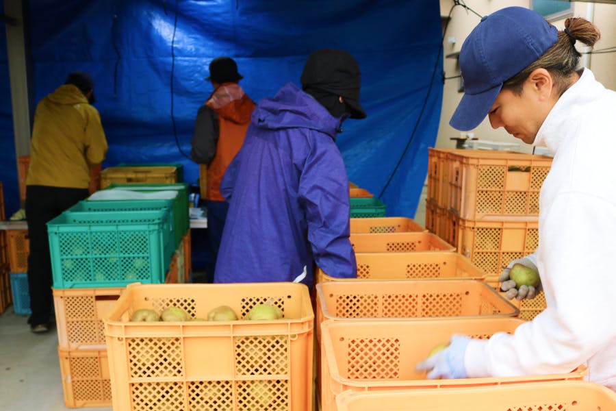 今年はアミノ酸とクエン酸を散布したことで、より濃厚でバランスの取れた味に仕上がったそう。収穫後は、信頼するスタッフとともに丁寧に選果を行い、2~3℃の貯蔵庫で“予冷追熟”を施してから出荷されます。