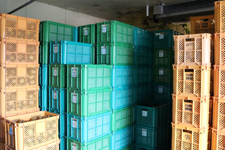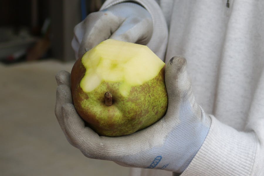 選果後、ラ・フランスの呼吸を低下させて鮮度を保つため、約2~3度の貯蔵冷蔵倉庫で1週間以上『予冷追熟』を行います。