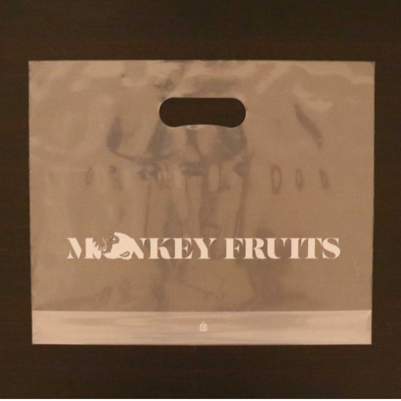 こちらは、フツー通販では珍しいMONKEY FRUITSオリジナルおすそ分け袋です。