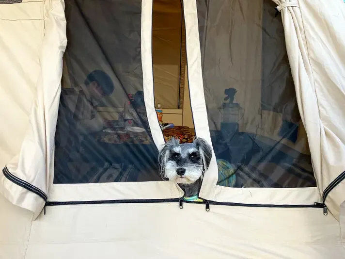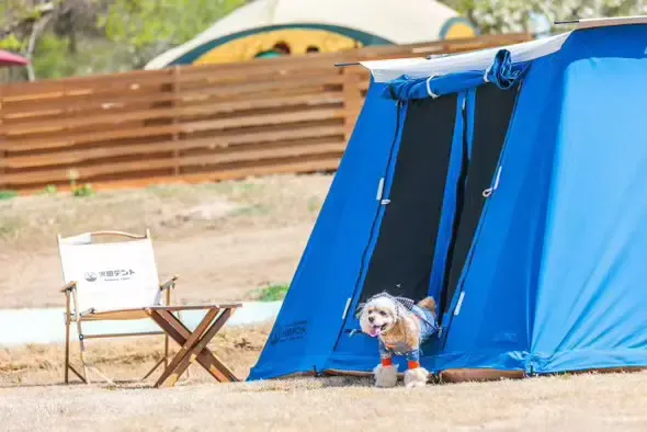 沢田テントユーザーさんは愛犬と一緒にキャンプをする方も多く、アウトドアフィールドで愛犬と過ごす中での「こんなものがあったらいいな」から始まりました。