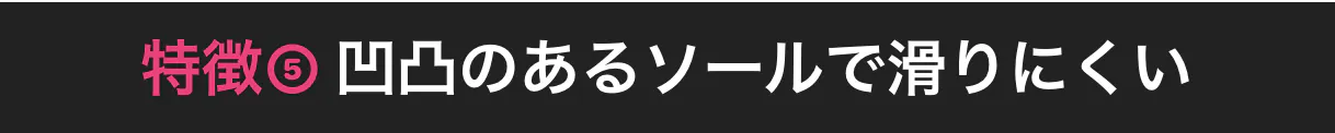 滑りにくさを追求したソールで、雨や雪のおでかけでも安心。ほどよいグリップで歩きやすさと滑りにくさを兼ね備えた優秀なソール。