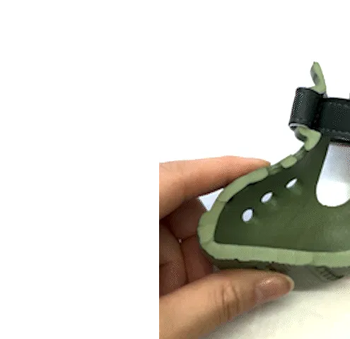 A. 調整可能なストラップでしっかりフィットするよう設計していますが、ワンちゃんの足の形によっては脱げやすい場合もございます。フィット感を見ながら、しっかりベルトでとめてあげてください。