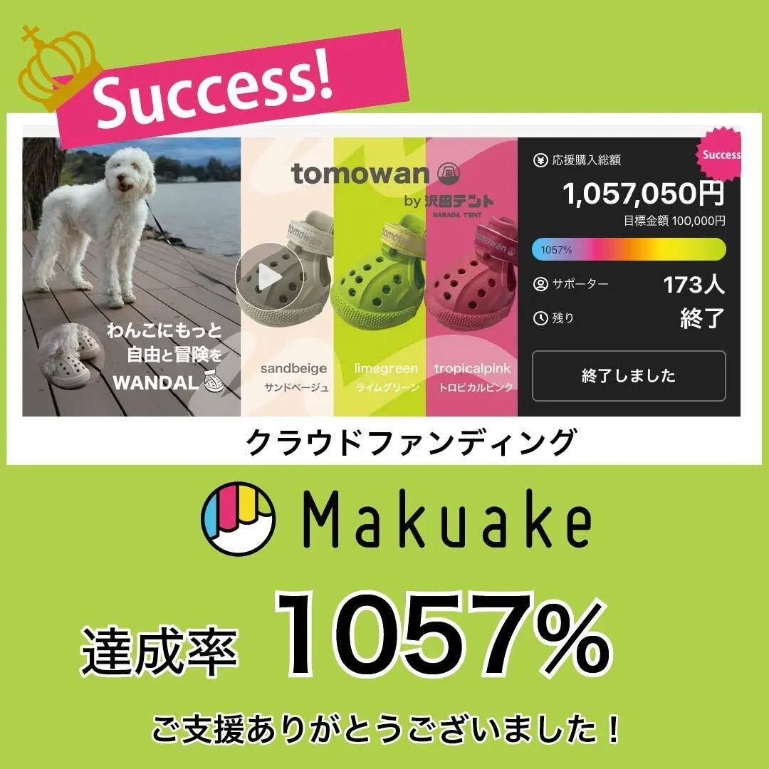 沢田テントのユーザーさんからよく聞く嬉しい言葉「うちのわんこが沢田テントお気に入りなんです!」に続くように、「うちのわんこがワンダルお気に入りなんです!」と言ってもらえるようになったら嬉しいです。