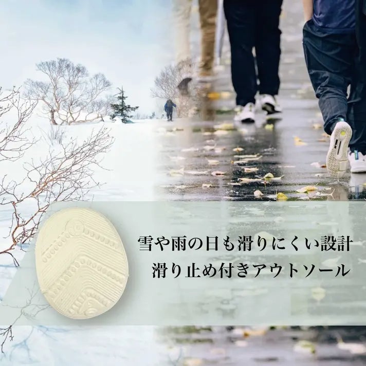 滑りにくさを追求したソールで、雨や雪のおでかけでも安心。ほどよいグリップで歩きやすさと滑りにくさを兼ね備えた優秀なソール。