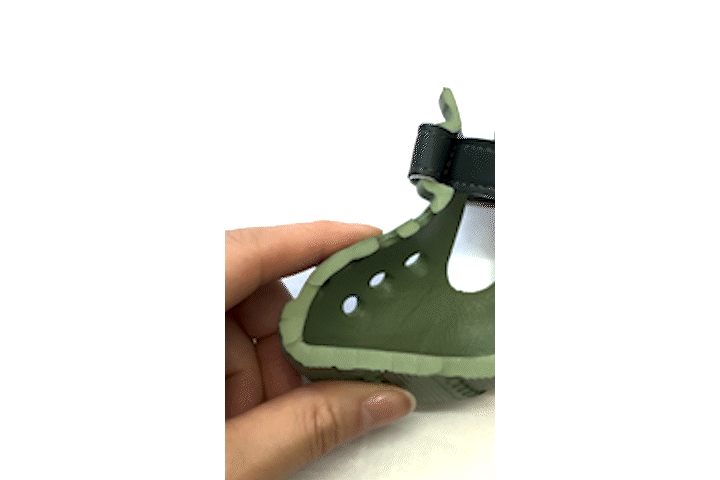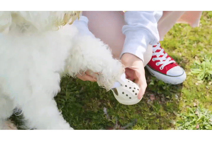 多くの犬は前足と後ろ足の大きさが異なっていて、さらに犬種によって足の形や大きさも異なります。柔軟なEVA素材と足にフィットするよう調節可能なストラップで、わんちゃんの足を優しく包みます。