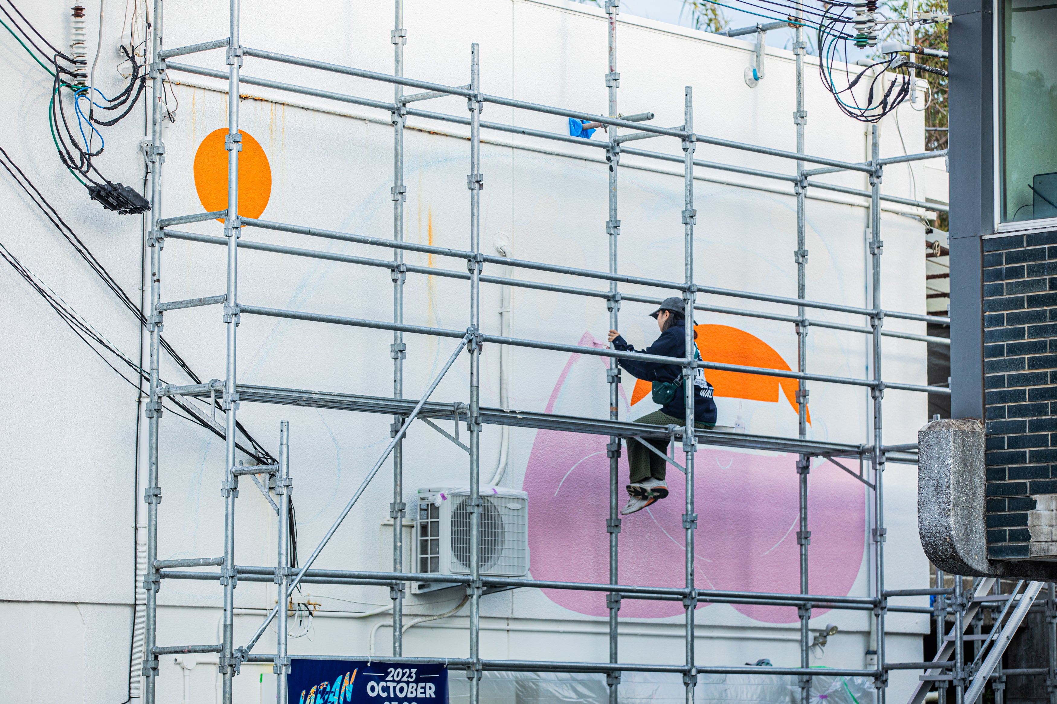 Maeda Mameko ー 私は2023年のJAPAN WALLSが初めての本格的な外壁ミューラルでした。昔から憧れていたJAPAN WALLSという大舞台で、ミューラルデビューを飾れたことが心からの誇りです!沢山の学びや愛おしさに溢れた現場で、白浜で過ごした1週間は最高の日々でした。私が描いていた壁の近所のお婆ちゃん達、先輩ペインターやスタッフの皆さんの優しさは一生忘れられません(泣)素晴らしい経験を本当にありがとうございました!!10周年おめでとうございます♡