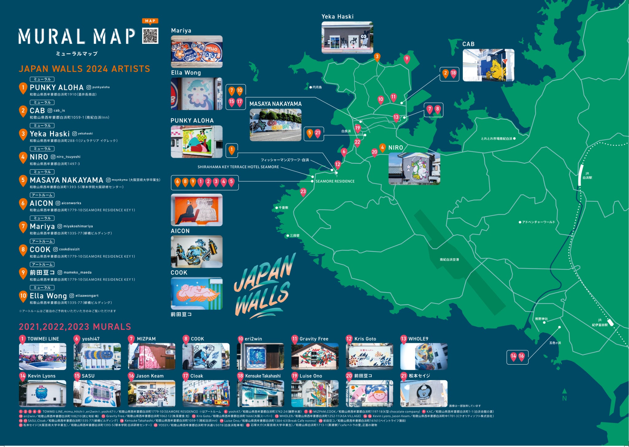 2024年までに制作した白浜のミューラルマップ