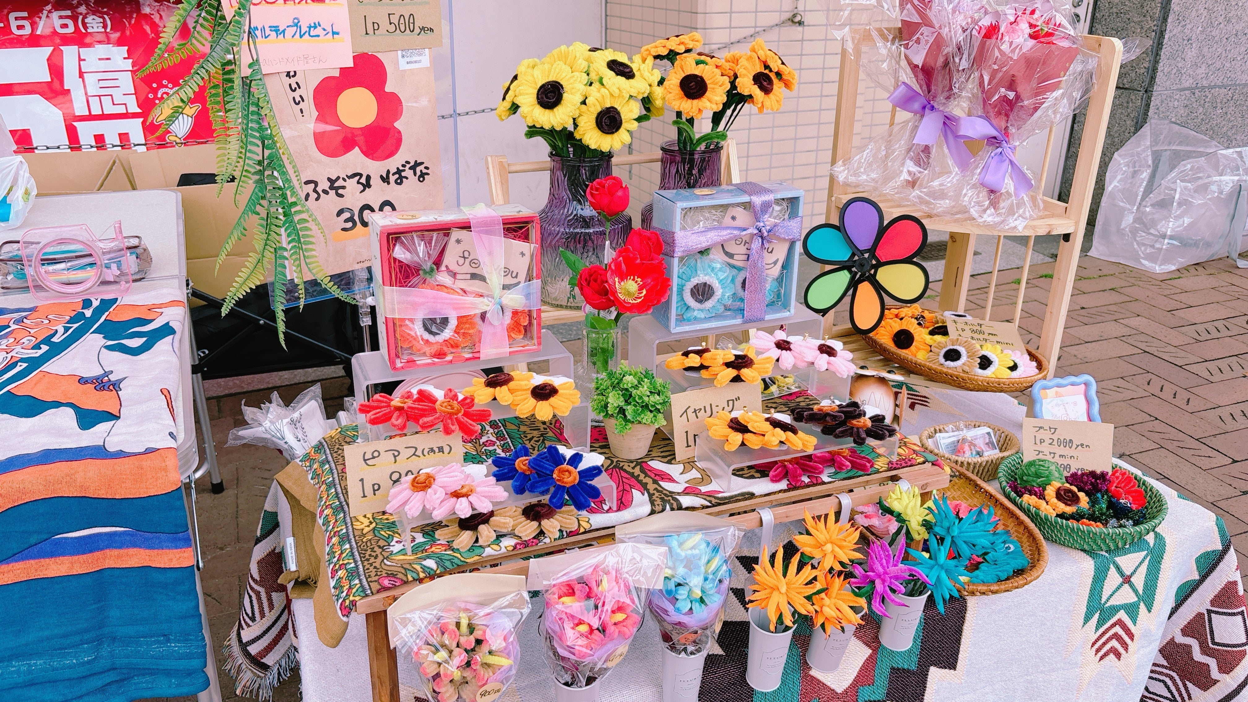 みなさまおはようございますこんにちはこんばんはataハンドメイド屋さんのataです!先日土曜日に地域イベント出店に参加させて頂きました!天候にも恵まれ風との闘いだけ白熱しておりました笑今回はノベルティプレゼント企画をしておりました。ご来店くださるお客様みんなノベルティゲットにむけてあれかこれかと悩みながら選んでいました。個人的にはへんないきものシリーズがお客様のもとへ旅立ったのが嬉しかったです!モールフラワーアクセサリーも安定の人気で惚れ惚れでした!次回は日曜日!更新をお楽しみに♡