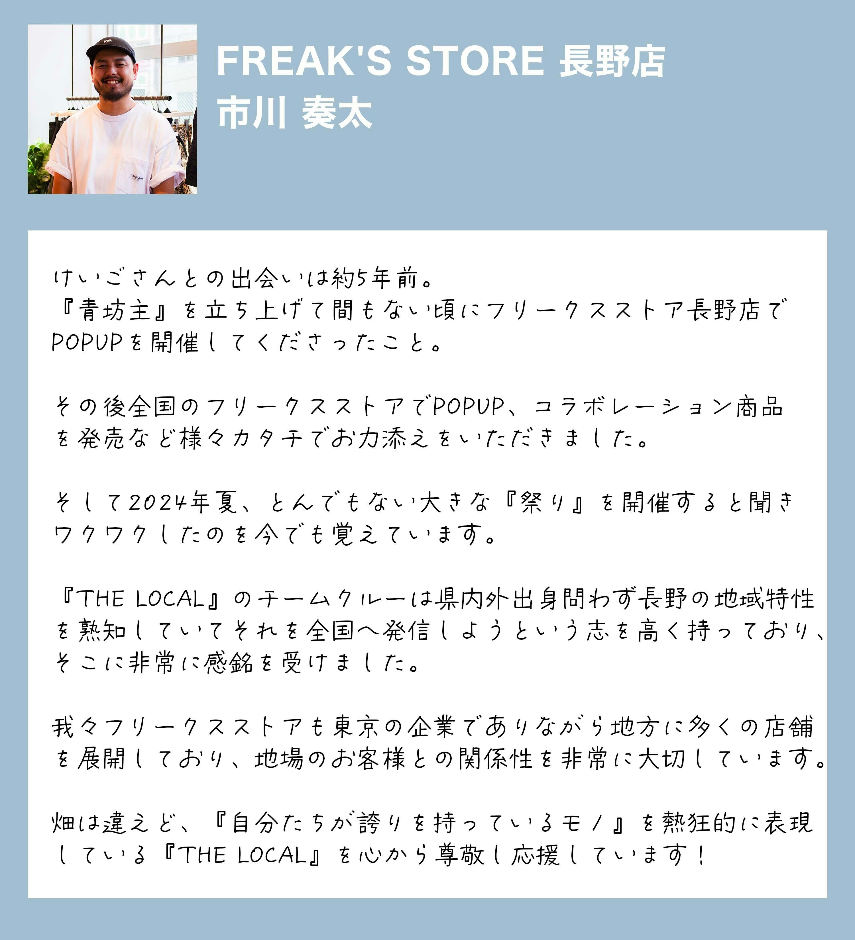 台風の影響で当日出店できなかった方も多くいましたが、「新しい出会い」という点で、県外の地元カルチャーを引っ張るお店が多く出店している点も、ルーツを県外に持ち、全国に活動の輪を広げてきたメンバーがいるTHE LOCALだからこそ実現できた面白さであったと自負しています。