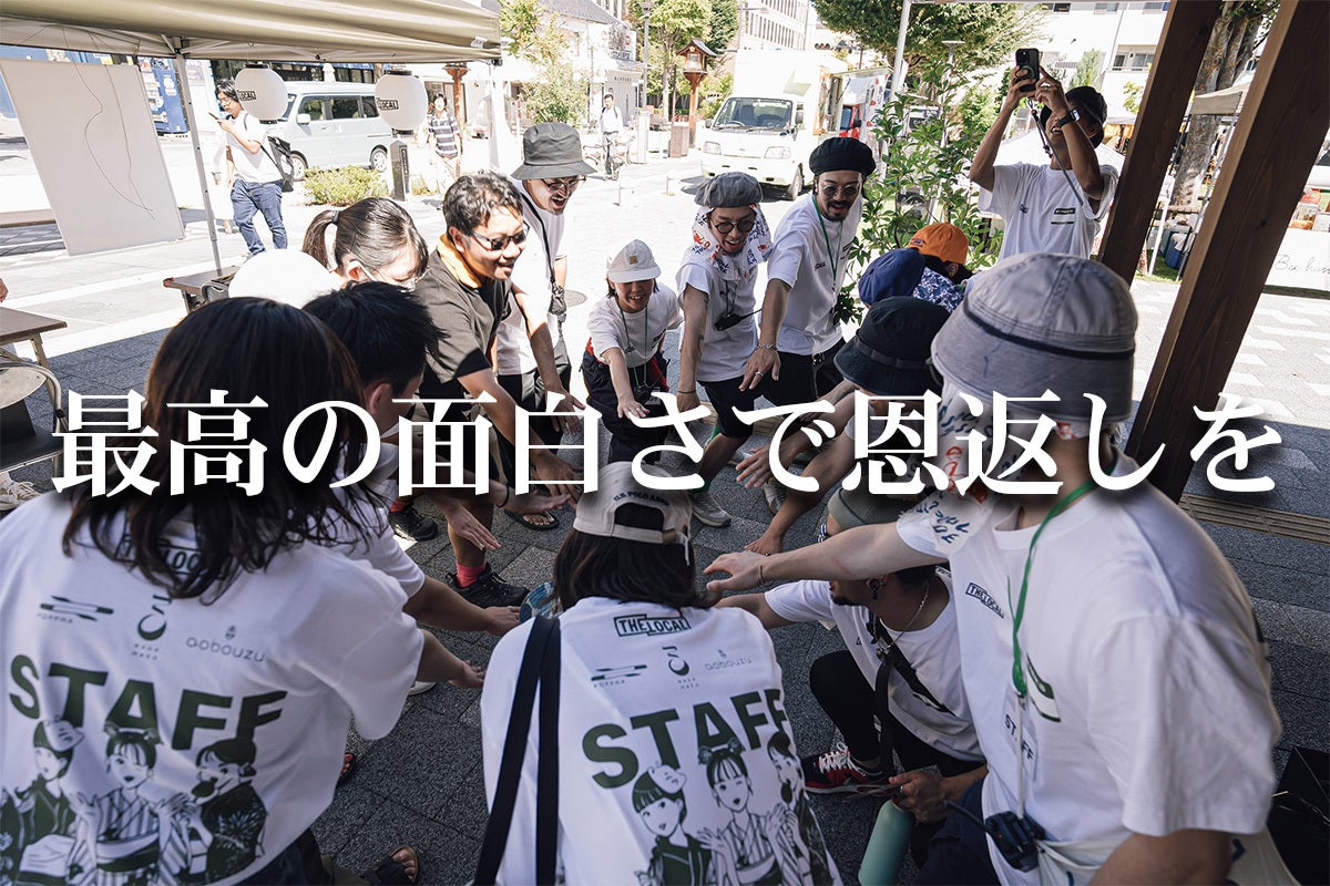 「祭り=間を釣る(人と人の間を釣り合わせる)」という、お祭りの語源の一説に心打たれた彼の「祭りがしたい!」という一言に賛同し、彼の紹介により今も中心メンバーとして共にTHE LOCALを引っ張る「青坊主」こと栗岡慧伍くんとも出会ったことで、「人と人を繋ぐ」ことを活動テーマに掲げた「THE LOCAL」は動き出しました。