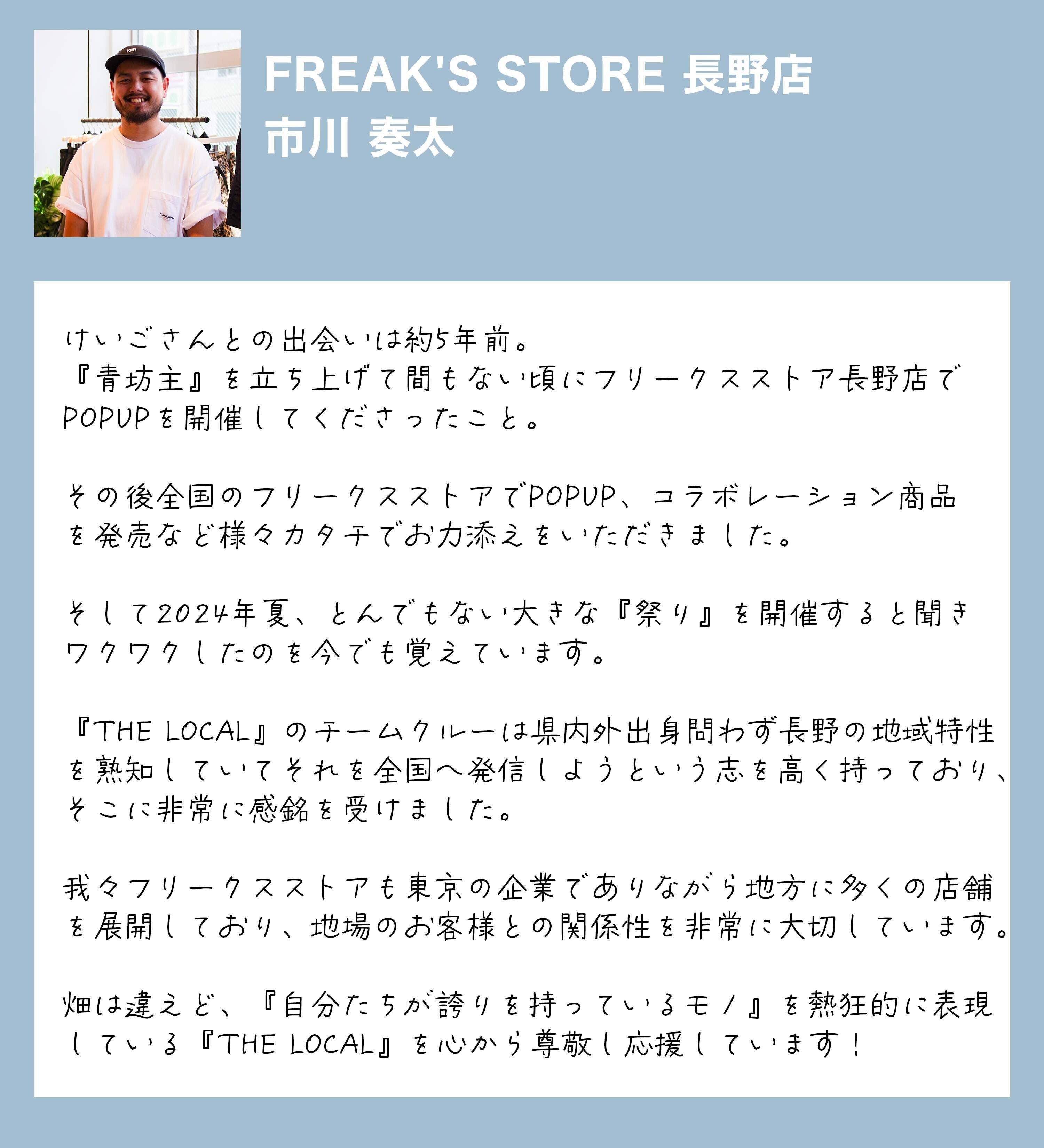 台風の影響で当日出店できなかった方も多くいましたが、「新しい出会い」という点で、県外の地元カルチャーを引っ張るお店が多く出店している点も、ルーツを県外に持ち、全国に活動の輪を広げてきたメンバーがいるTHE LOCALだからこそ実現できた面白さであったと自負しています。